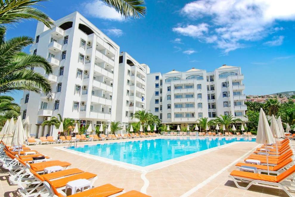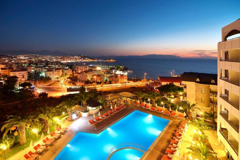 Хотелът е построен на хълм, от който се разкрива панорамна гледка към централната част на града, пристанището и Птичия остров. Летище "Милас" отстои на 125 км от летище "Милас", центърът на Кушадасъ е на 1,5 км, морето е на 2 км.