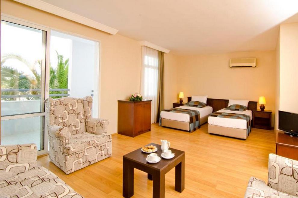 Хотелът посреща гостите в 125 климатизирани стаи, от които 103 стандартни стаи (18-24 кв.м), 19 фамилни стаи (32 кв.м) и 3 суита ( 48 кв.м). В саите има LCD TV, телефон, минибар (празен), сейф, баня с душ, сешоар, балкон. Стаите се почистват всеки ден, спалното бельо се сменя 2 пъти седмично.