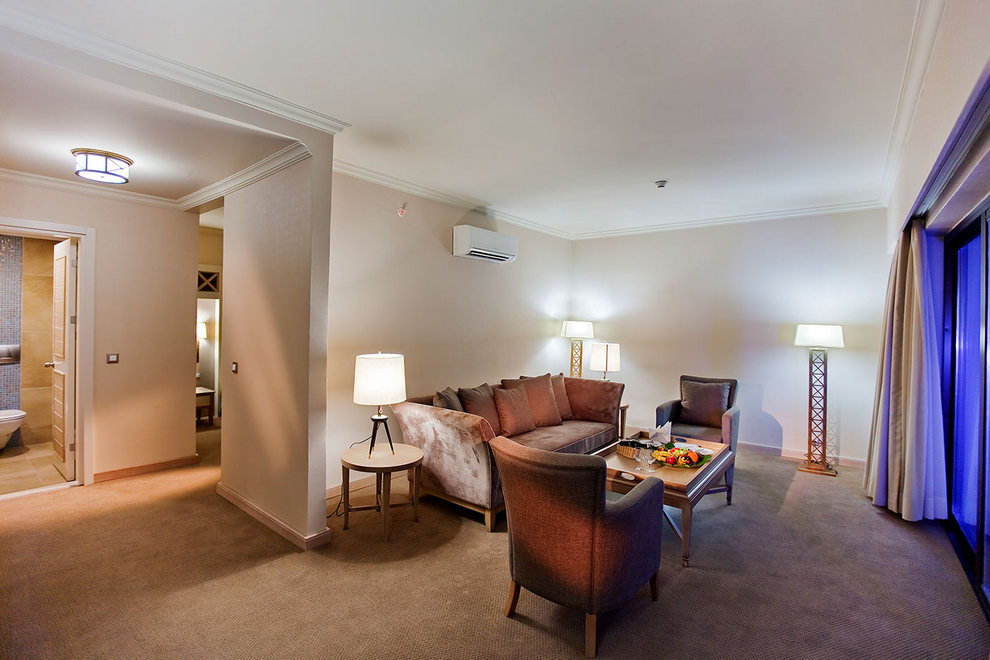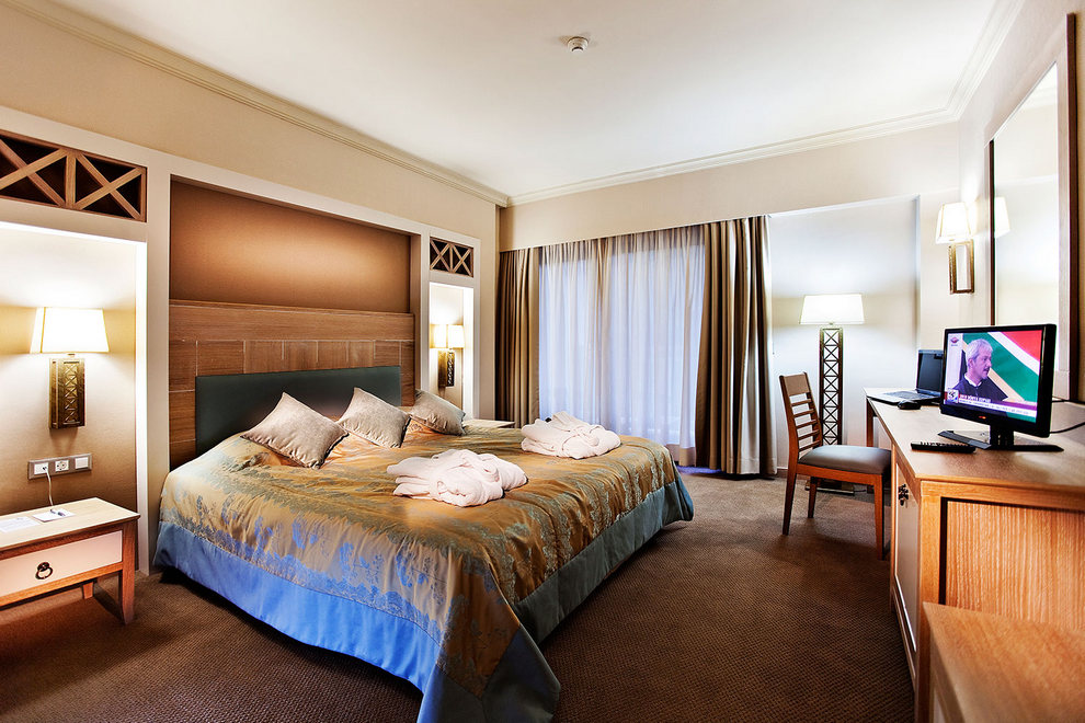Хотелът се състои от един 7-етажен корпус, конструиран така, че всички стаи да имат гледка към морето. Посреща гостите си в 84 климатизирани стаи. Те са оборудвани с телевизор, телефон, минибар, сейф, самостоятелна баня, сешоар, балкон, безплатен Wi-Fi. Ежедневно почистване на стоите, спалното бельо се сменя три пъти седмично.