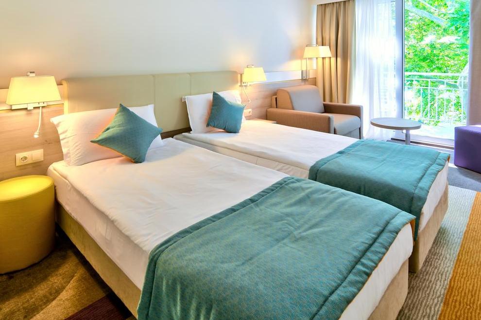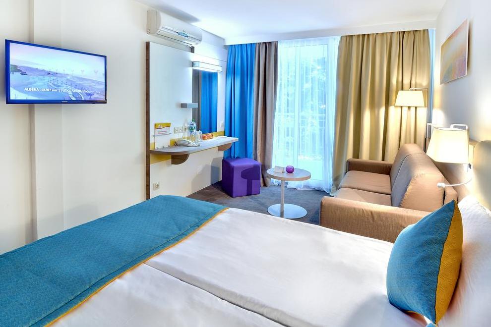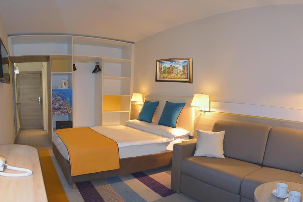 Елегантно и удобно обзаведени с мек мокет и удобни мебели, стаите разполагат със спалня 160х200 см и разтегателен диван или две единични легла 90х200 см и разтегателен фотьойл. Баните са с душ кабина и са оборудвани със сешоар и безплатни тоалетни принадлежности.
