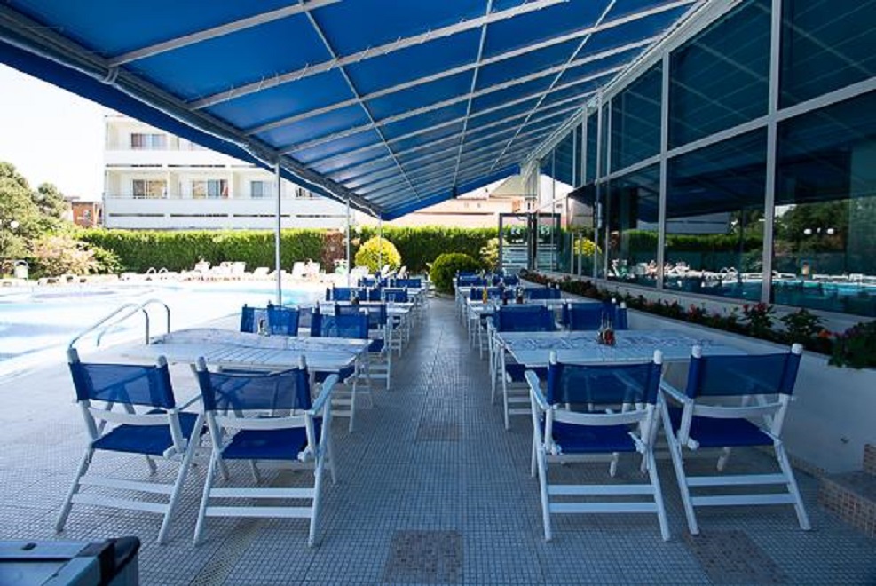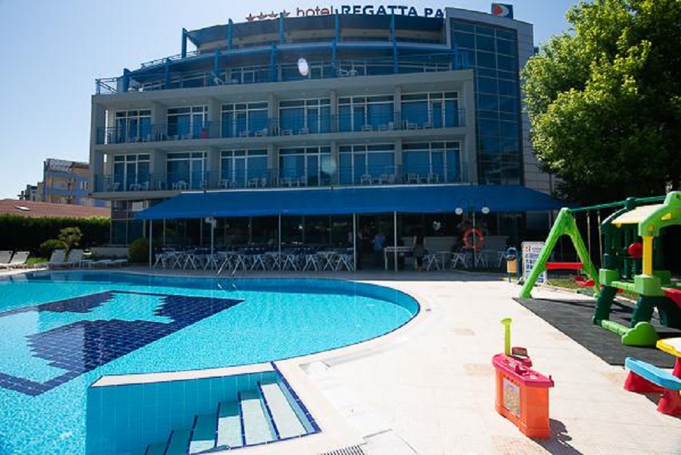 Плажът е на 100 м от хотела, който предлага и удобството на открит басейн и тераса за слънчеви бани.