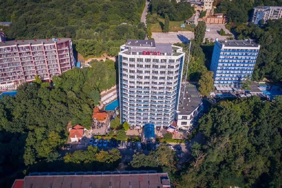 Хотел „Роял” е разположен в централната част на к.к. „Златни пясъци”, на няколко минути от плажната ивица и разполага с прекрасен, панорамен изглед към целия комплекс. В близост до хотел „Роял” има много магазини, ресторанти и кафенета. Хотелът се намира на 5 мин. пеша от развлекателния воден център „Акваполис”- една от най- добрите водни атракции по рода си в България. Обграден от зелени площи, хотел „Роял” е идеалното място за почивка, близо до всички атракции на курорта и на около 300 м от пясъчния плаж.