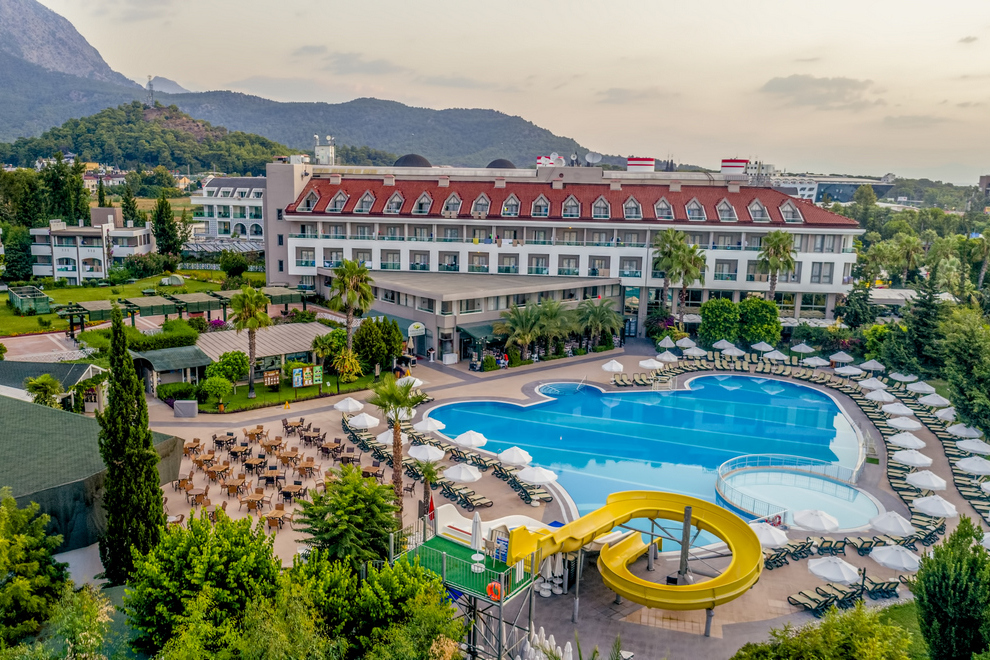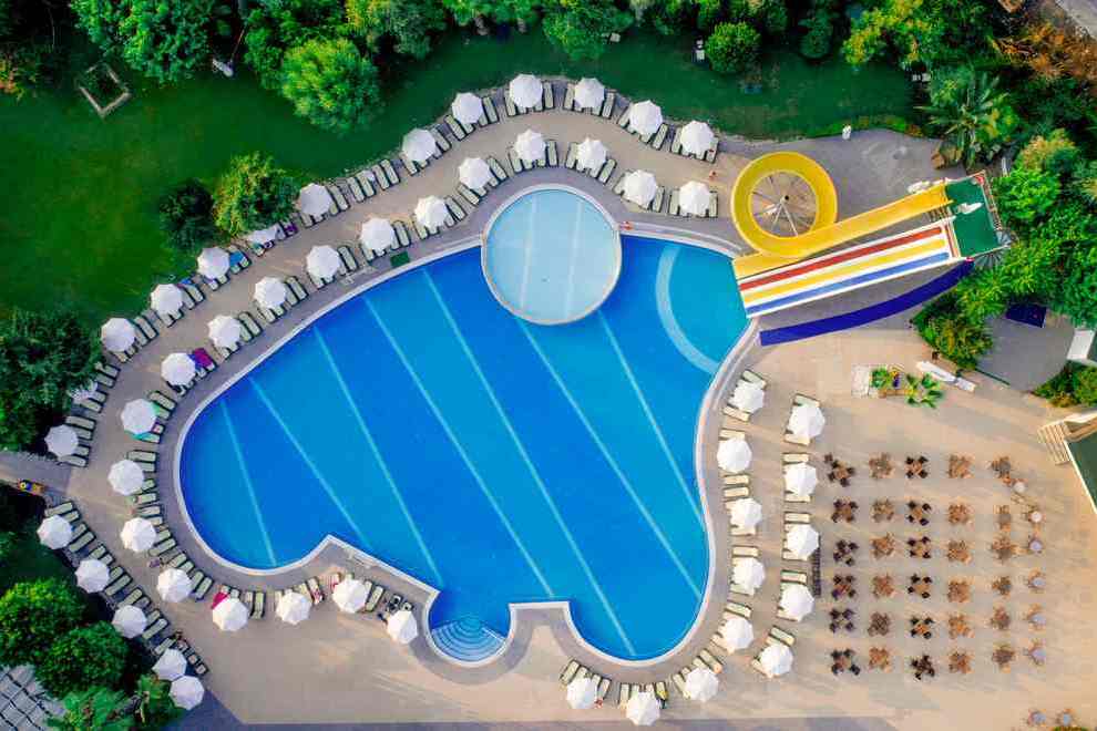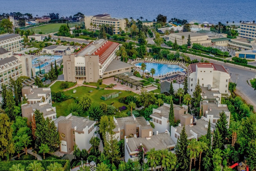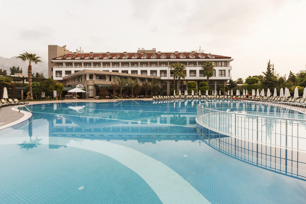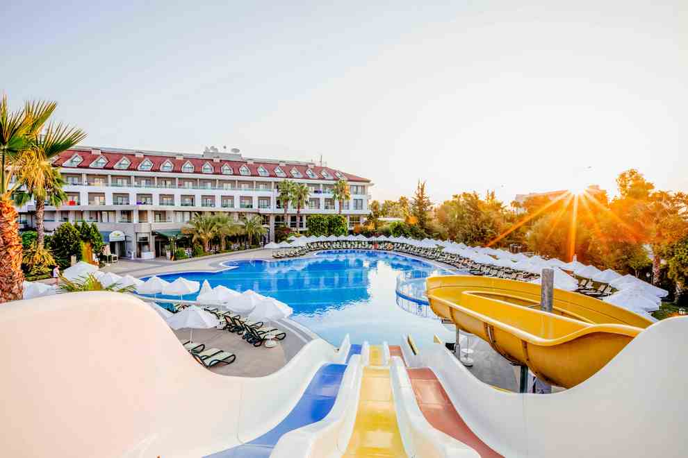 Този хотел се намира на около 100 метра от брега на Средиземно море и предлага собствена зона на плажа. Има 6 външни басейна - основен, детски, с пързалки за възрастни, с пързалки за деца. Вътрешен басейн със секция за деца. Комплексът предлага безплатни шезлонги, възглавници и чадъри.