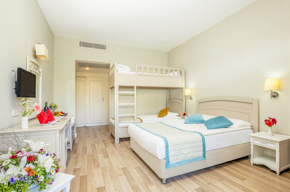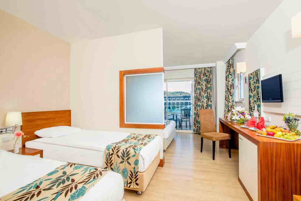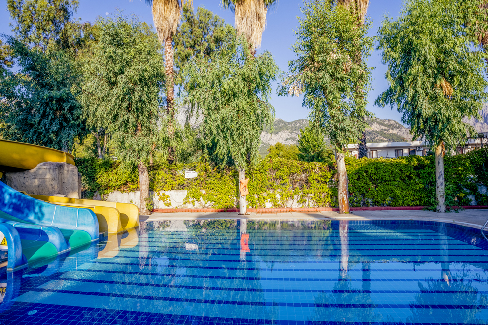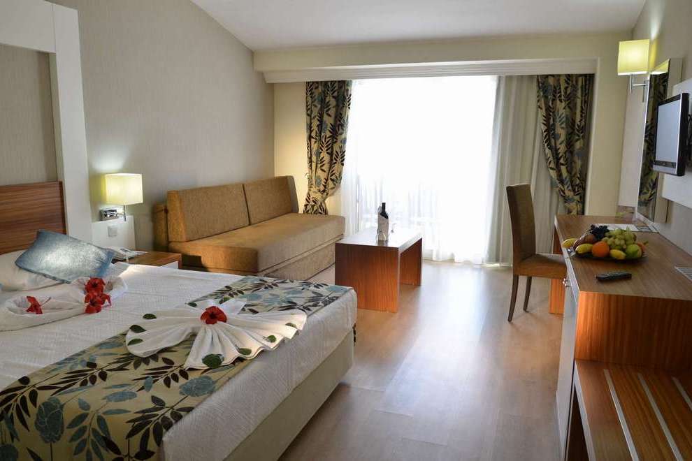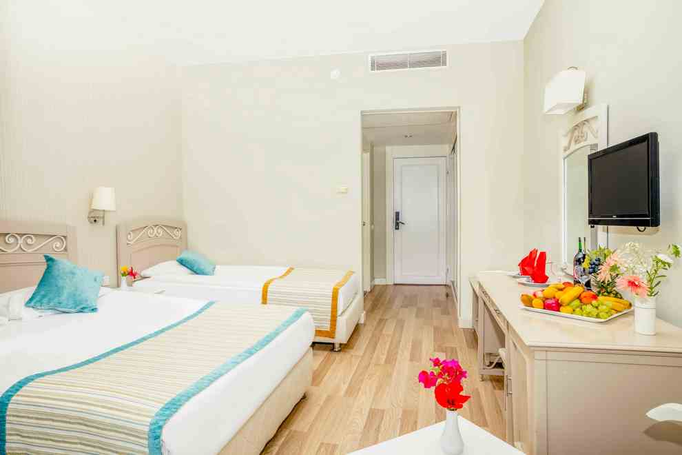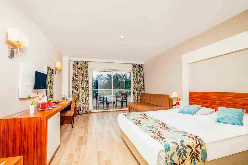 Този хотел се намира на около 100 метра от брега на Средиземно море и предлага собствена зона на плажа. Има 6 външни басейна - основен, детски, с пързалки за възрастни, с пързалки за деца. Вътрешен басейн със секция за деца. Комплексът предлага безплатни шезлонги, възглавници и чадъри.