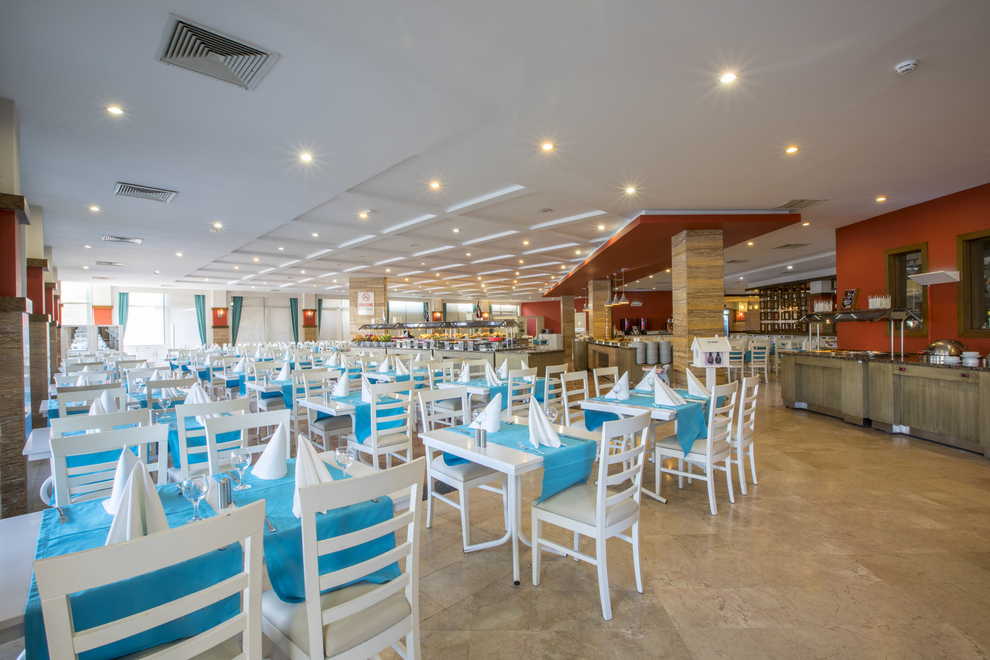 Основен ресторант на All Inclusive база от 07:00 до 24:00 часа. 2 снек ресторанта, италиански а`ла карт, 5 бара. Основният ресторант сервира голямо разнообразие на ястия от международната кухня. На плажа и край басейна се предлагат напитки и леки закуски. А`ла карт ресторантът предлага средиземноморския вкус на италианските специалитети.