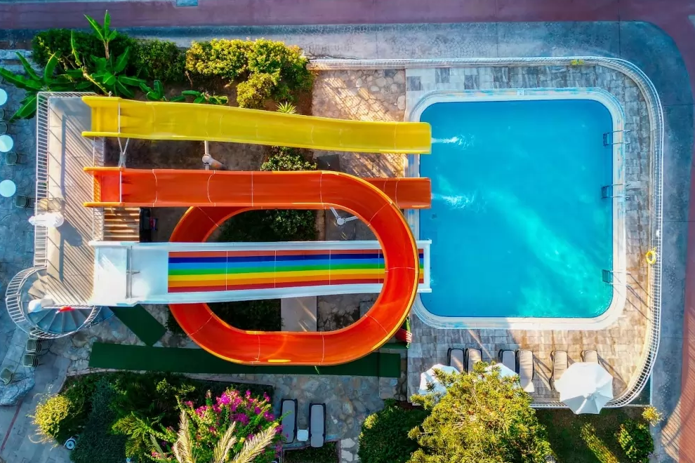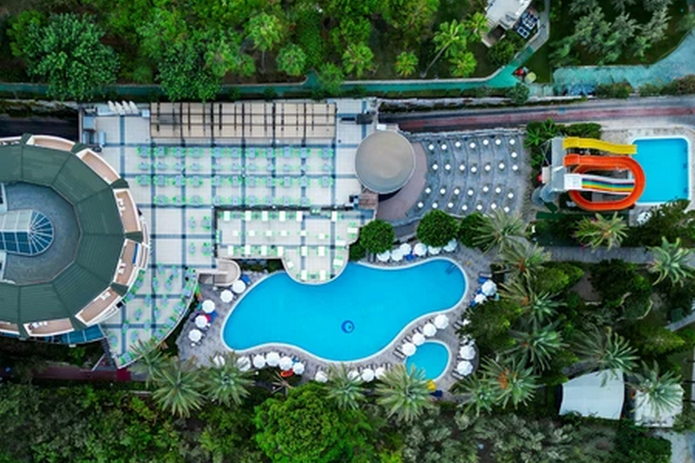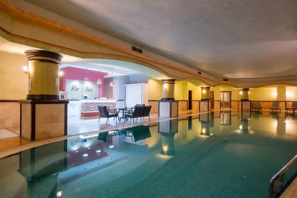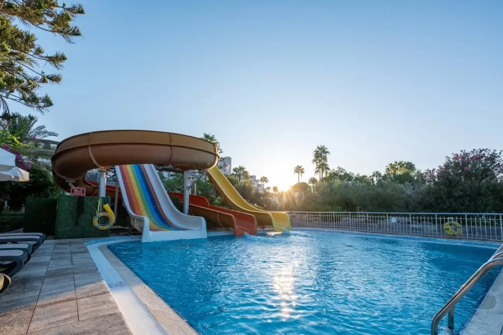Хотелът разполага със собствен плаж на първа линия. Закрит и открит плувни басейни, водна пързалка. Тераса за слънчеви бани.