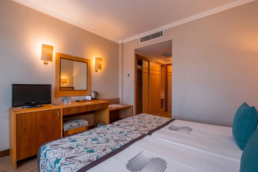 Хотелът посреща гостите си в 207 стаи, като 175 от стандартните стаи предлагат страничен морски изглед. 32 фамилни стаи, които се състоят от свързани стаи с две спални. Всички стаи са оборудвани с плоскоекранен телевизор със сателитни канали, телефон, минибар и сейф, кът за сядане, баня с душ, сешоар и безплатни тоалетни принадлежности. Ежедневно подреждане на стаите. За Сезон 2026 г. хотелът прави основна пеновация на всички стаи.