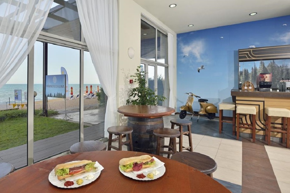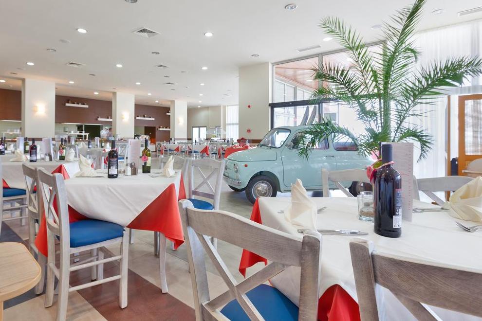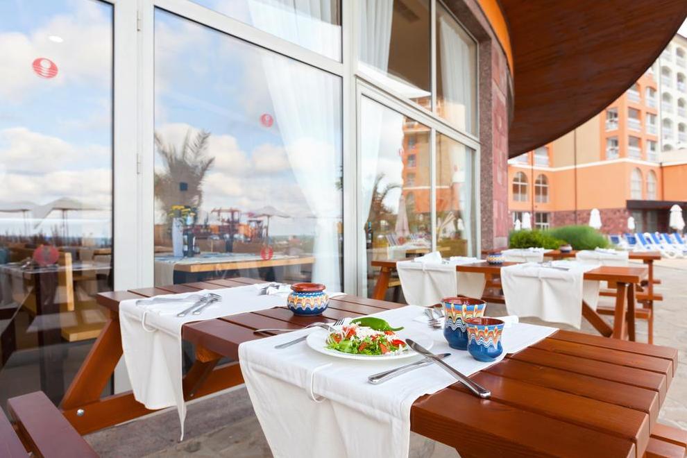 Основен ресторант и два тематични: италиански и български, които сервират традиционни за региона им ястия за вечеря (препоръчителна е предварителна резервация). Снек-баровете предлагат италиански и испански леки закуски. На разположение има лоби бар и бар край басейна.