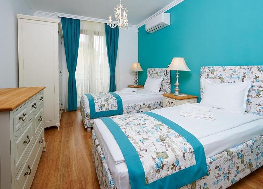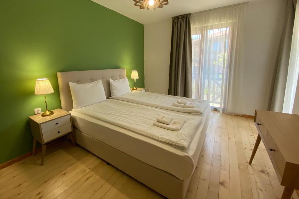 Предлага се настаняване в апартамент с една спалня – 80 кв.м; апартамент с две спални – 115 кв.м.; вила с две спални – 155 кв.м.