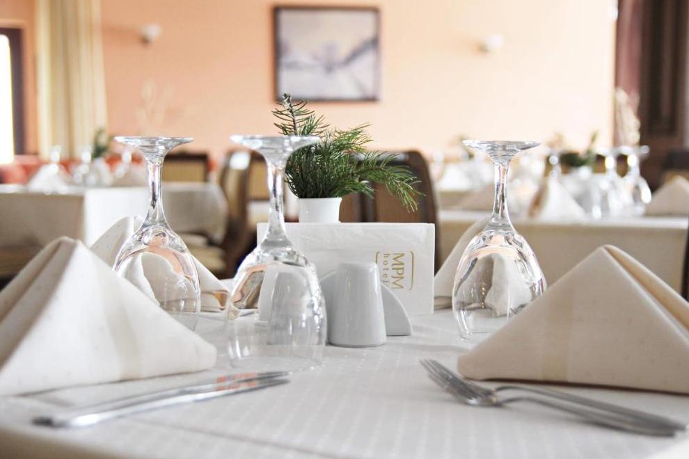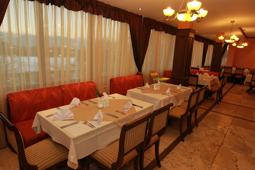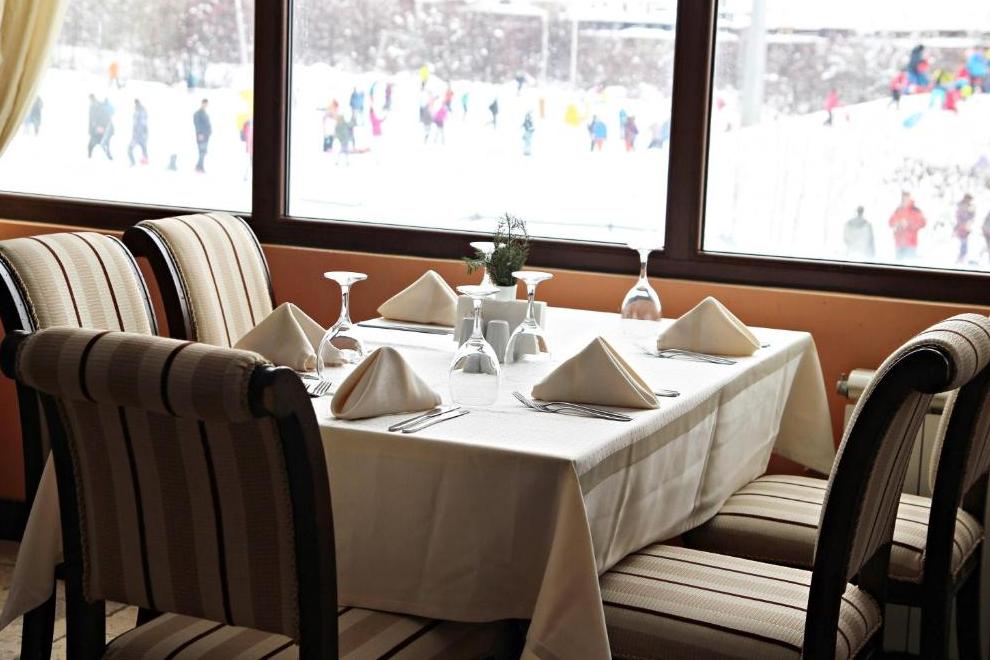 НОВОГОДИШНА ГАЛА ВЕЧЕРЯ: 160 лв. за възрастен, 80 лв. за дете от 1 до 12,99 години. Ресторантът разполага с основен ресторант със 130 места за сядане и „Егур Егур“ – а`ла карт ресторант с изискана селекция от ястия и вина. Лоби барът предлага леки закуски.