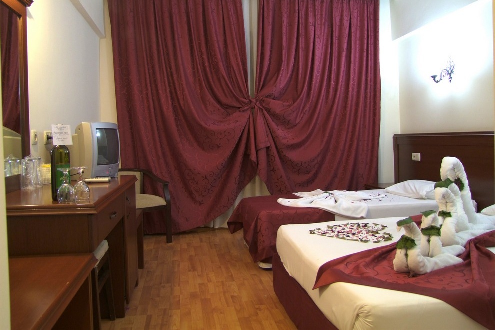 Хотелът се състои от една 5-етажна сграда, в която има 77 стандартни стаи с максимално настаняване в стая 2+1 човека. Стаите са оборудвани с индивидуален климатик, телевизор, телефон, мини-бар (празен), сейф (платено), балкон, душ, сешоар.