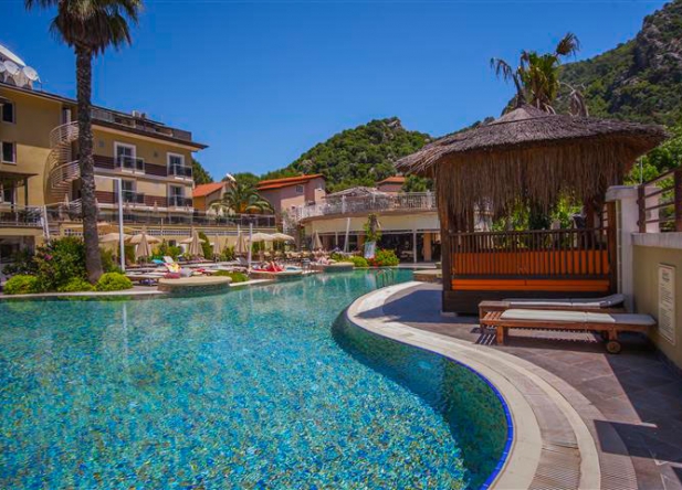 Описание Хотелът ни се намира в Ичмелер, Мармарис, където се срещат синьото на морето и зеленото на гората. Това е един от уникалните хотели в Мармарис. Има 2 секции: само за възрастни и семеен. Хотелът е на 95 км до летище "Даламан", на 7 км до центъра на Мармарис и на 150 м до известния плаж на Ичмелер. Хотелът е на пешеходно разстояние до магазини, бутици, барове и ресторанти. Има автобуси до / от Мармарис на всеки 5 минути в предната част на хотела.