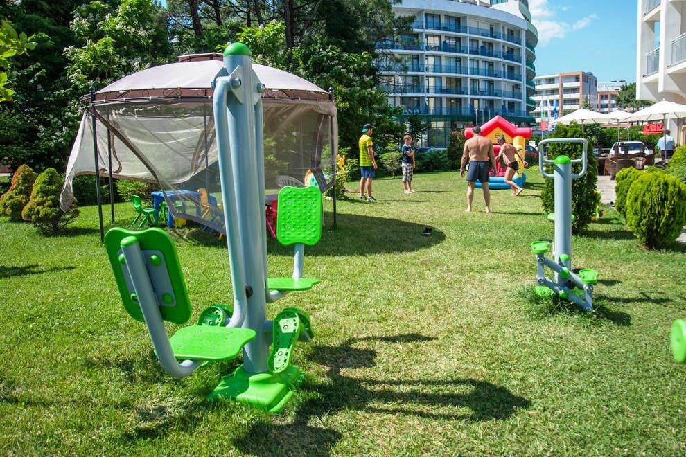 Анимация: от 10:00 до 12:30ч. - спортни занимания, включително аеробика, танци и водна гимнастика на басейна. От 15:00 до 17:30ч. - активни, тематични игри за деца 6 пъти седмично в градината. За децата: В стаите: безплатно се предоставя бебешка кошара при предварителна заявка. В ресторанта: безплатно се предоставят детски столчета. За игра: професионален детски център, мини-диско 6 пъти седмично (предварително обявена на информационното табло), детски кът, площадка (до външния басейн). Детска анимация и секция за деца в басейна. На място може да се ползва частен паркинг срещу заплащане.