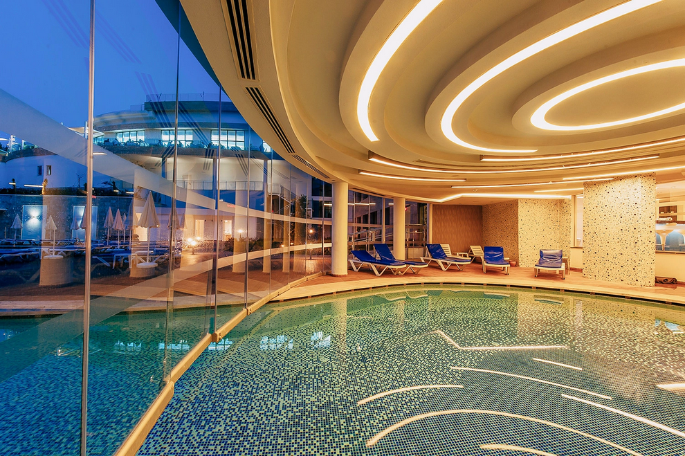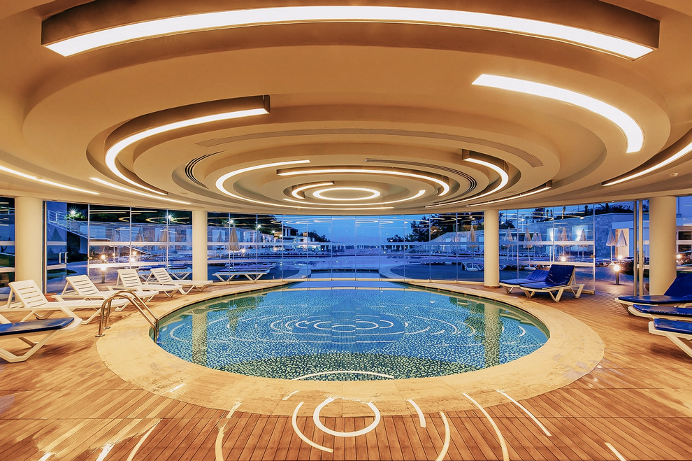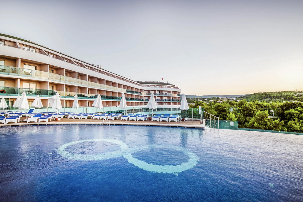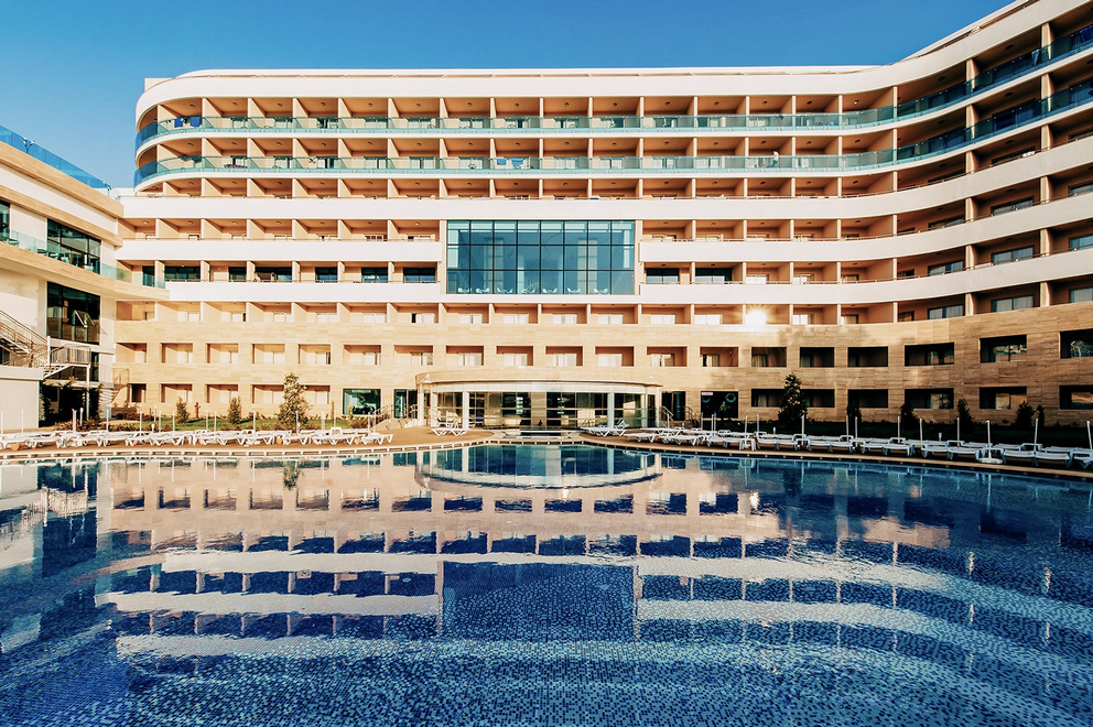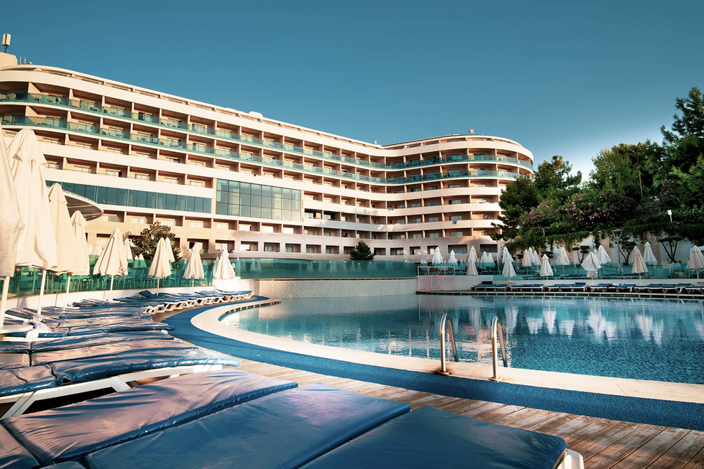 Голям аквапарк 16 водни пързалки за възрастни + 8 водни пързалки за деца, рафтинг, кула за бънджи. Сауна, турска баня, тенис на маса, тенис на корт, гимнастически салон, аеробика, водна гимнастика, футбол, баскетбол, плажен волейбол, стрелба с лък, дартс, анимационна програма, дискотека. Срещу заплащане - масаж, билярд, тенис уроци, тенис ракети и топки – под наем, осветление на тенис кортовете, всички видове водни спортове, интернет кафе. За децата са осигурени детски басейн, детски водни пързалки, детска площадка, мини клуб (4-12 год.), детска количка, детегледачка.