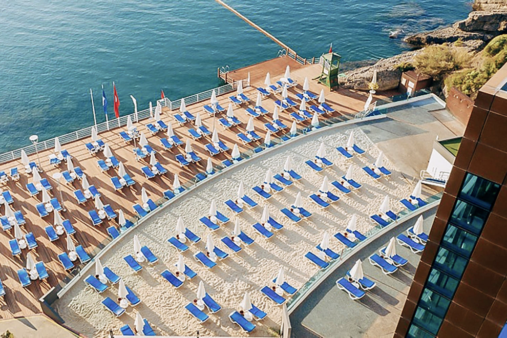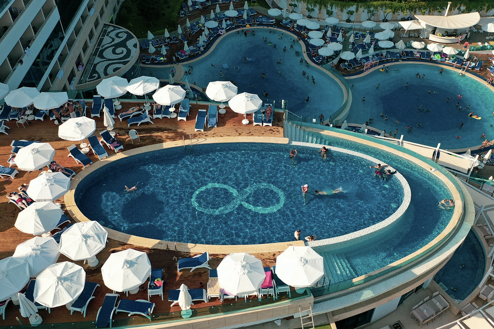 Хотелът разполага със собствен плаж, платформа на три нива, 3 открити басейна. На басейна и на плажа - чадъри, плажни кърпи, шезлонги, матраци се предоставят безплатно.