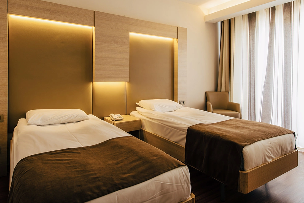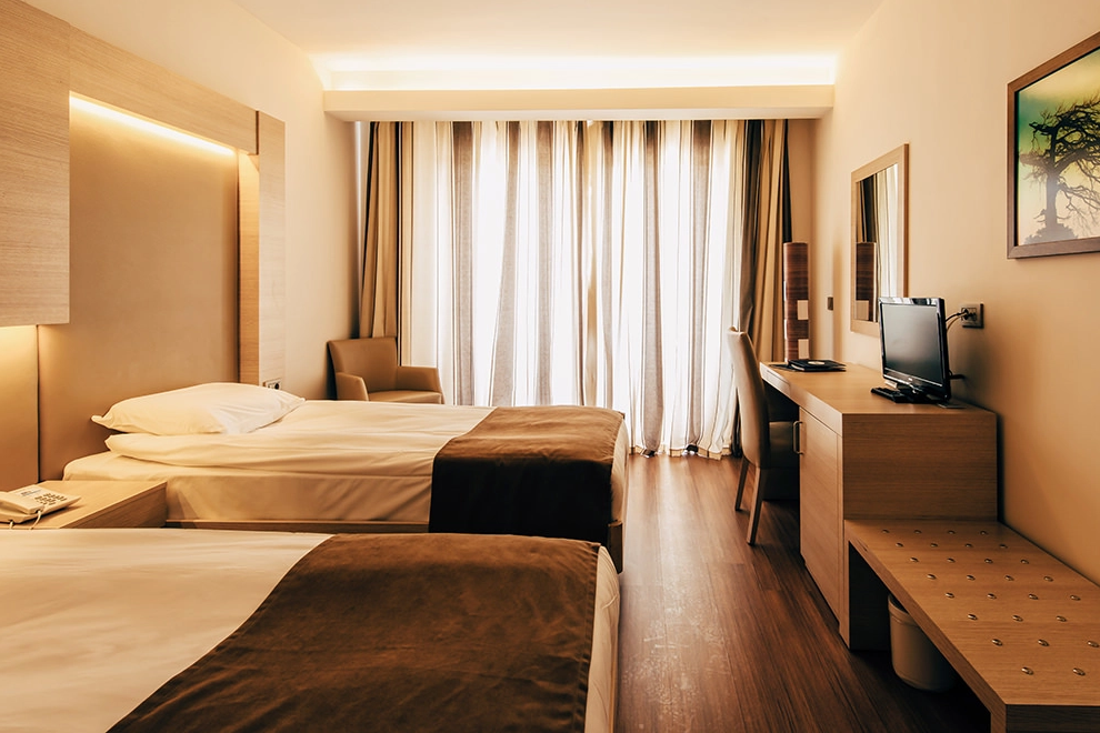 Хотелът посреща гостите си в 421 климатизирани стаи. Всички са оборудвани с телевизор, телефон, минибар, сейф в стаята, самостоятелна баня. Почистване на стаите - всеки ден, смяна на спално бельо - 3 пъти седмично.