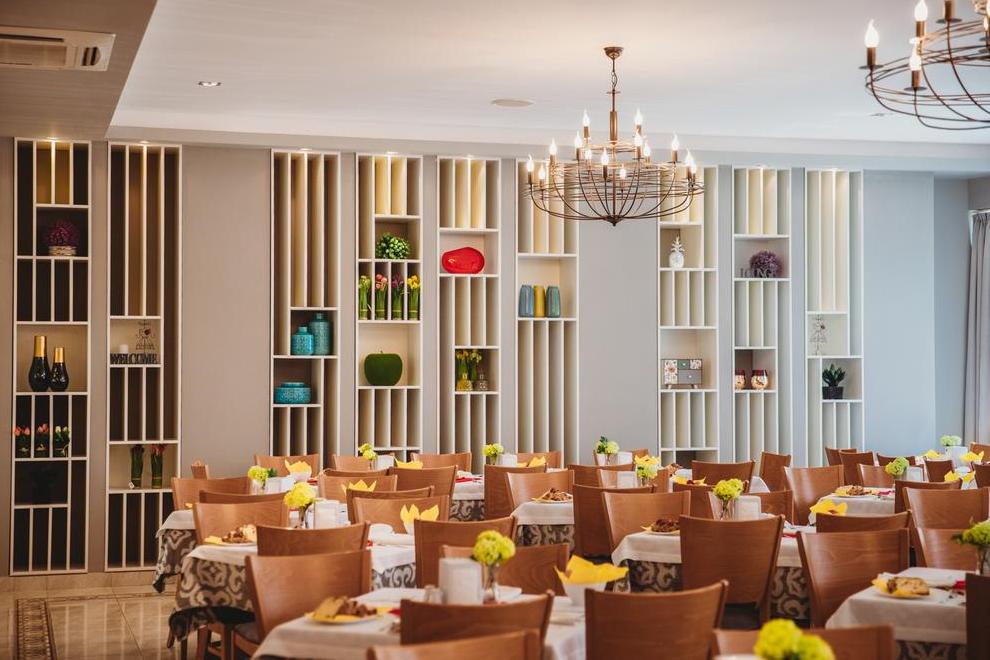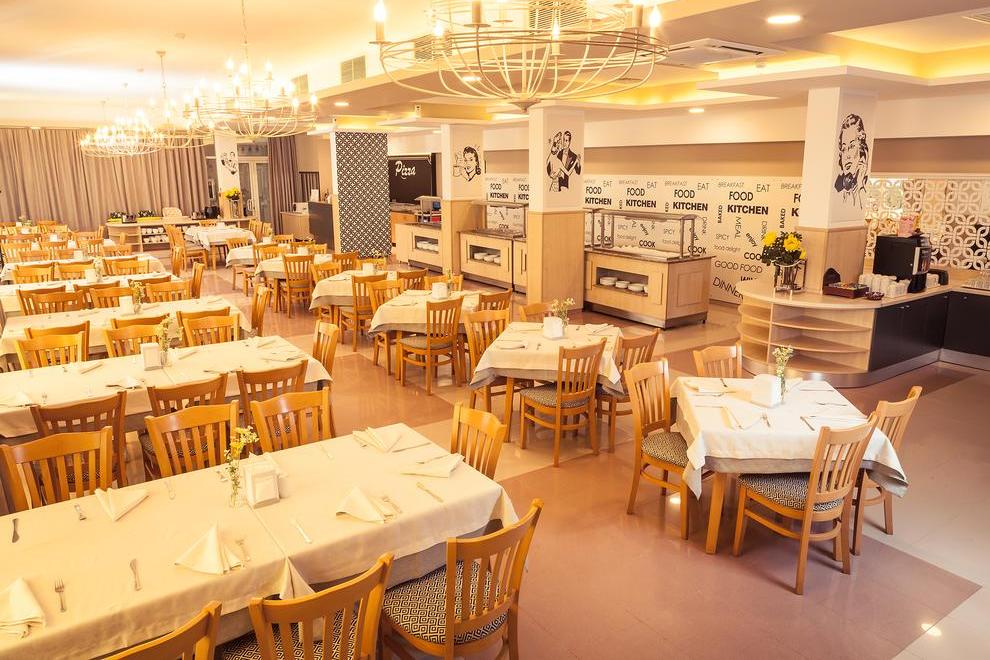 Ресторант ВЕЛА предлага 300 места на открито и на терасата. Разнообразен бюфет, предлагащ шоу кукинг и разнообразни кулинарни секции. Специалитети от местната и интернационалнa кухня. Тематични вечери. Работно време: 7.30 до 23.00ч. Брънч ресторантът разполага с елегантен салон с 200 места за настаняване и слънчева тераса. Изискан бюфет с богат избор на свежи салати, прясно приготвени ястия, плодове и десерти. Работно време: 10.30 до 18.00ч. Лоби барът предлага богат избор на коктейли и напитки. Идеално място за сутрешното ви кафе, следобеден чай или освежаващ коктейл вечер. Голямо разнообразие от кафе и чайове, вдъхновени от международни вкусове. Млечни шейкове, плодови сокове и освежаващи коктейли. Работно време: от 8.00 до 24.00ч. Пул барът предлага разнообразни алкохолни и безалкохолни напитки около басейна. Работно време: от 10.00 до 18.00ч. Нощен бар ВЕЛА предлага неизчерпаеми възможности за забавления.В допълнение към маркови питиета в приятна обстановка с възможност за билярд, професионален дартс и над 1000 телевизионни канала. Работно време: от 22.00 до 5.00ч.