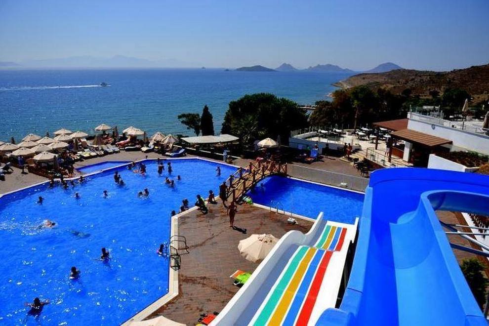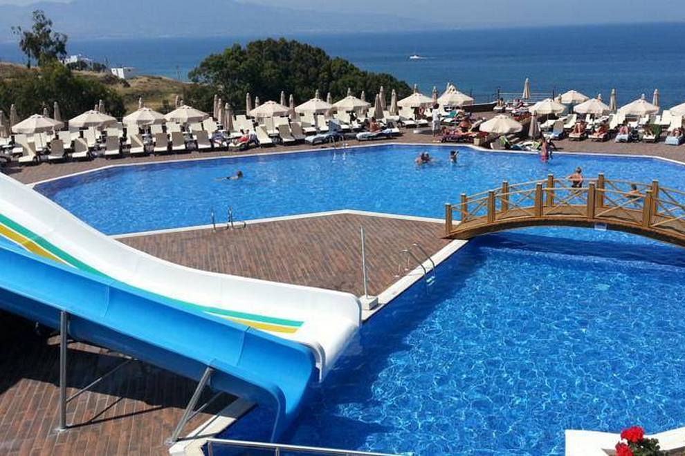 Хотелът е само на 200 метра от морето и има собствен пясъчен плаж и платформа. Безплатен шатъл до плажа от 10:00 до 18:00 на всеки половин час. Има също открит басейн с 2 водни пързалки. Чадъри и шезлонги на плажа и при басейна се ползват безплатно, плажни кърпи - срещу депозит.