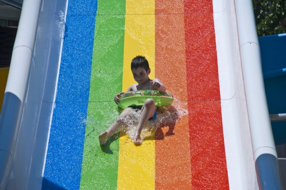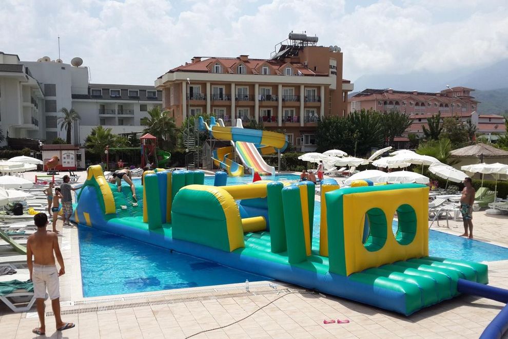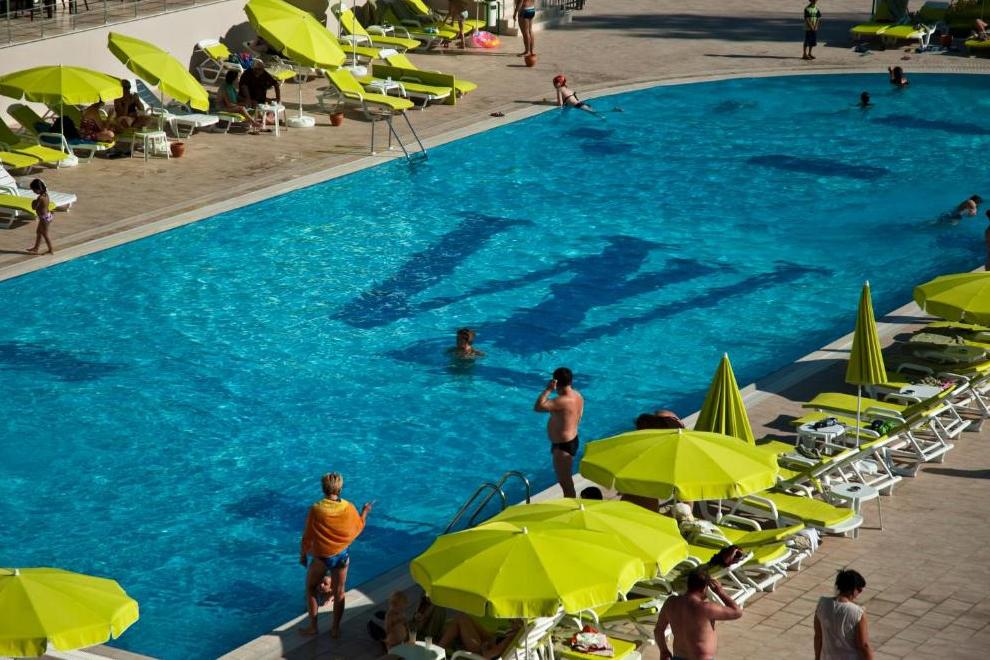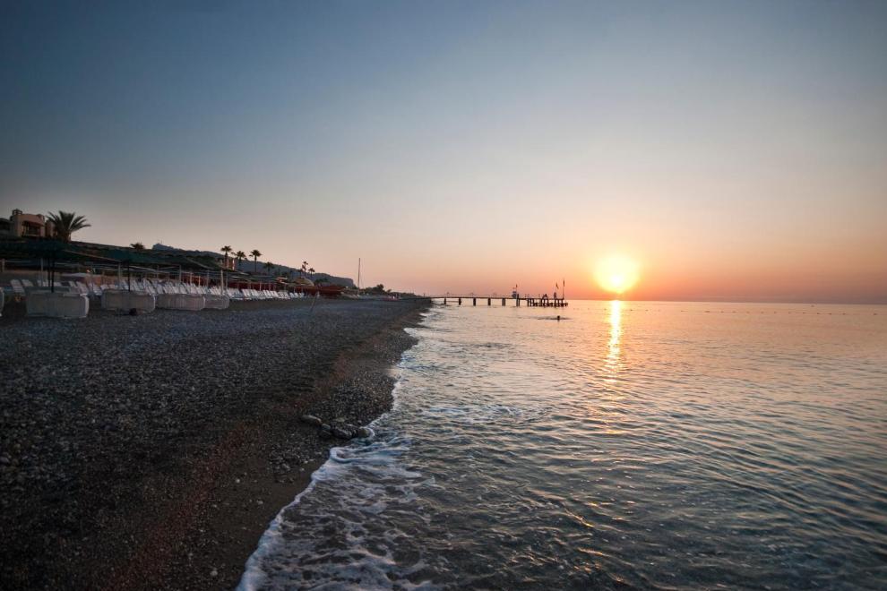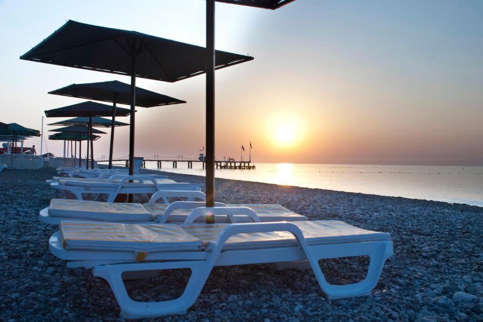 Хотелът има собствен пясъчно-чакълест плаж на около 150 м от хотела, и открит басейн с две водни пързалки.