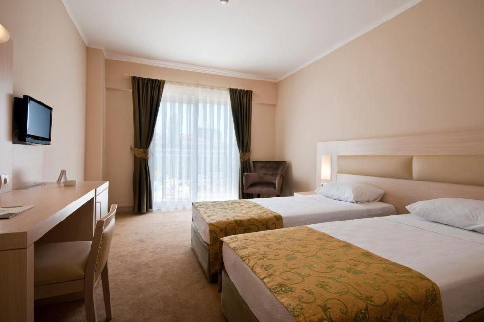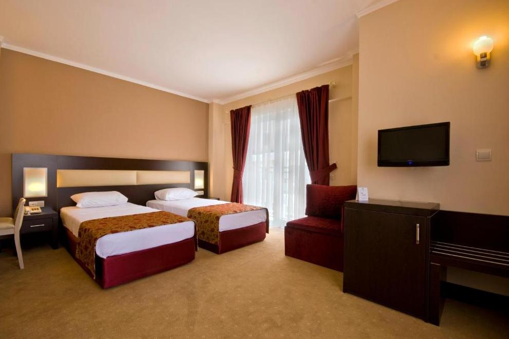 Хотелът се състои от една основна четириетажна сграда (з асансьора), в която са разпределени 188 стаи. Те са оборудвани с телевизор, телефон, сейф, мини хладилник, Wi-Fi (платено), самостоятелна баня, тоалетни принадлежности. Стаите се почистват ежедневно, спалното бельо се сменя веднъж на три дни.