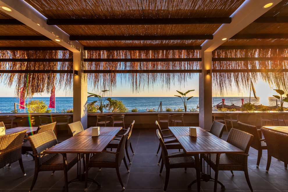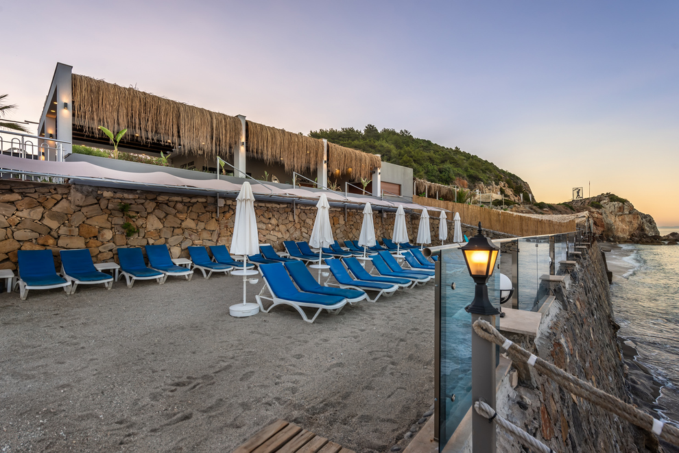 Хотелът разполага със собствен пясъчно-чакълест плаж, до който се достига чрез подземен преход. Бар на плажа. Открит плувен басейн с две пързалки. Чадъри, шезлонги, матраци на плажа и при басейна се ползват безплатно. Има тераса за слънчеви бани.