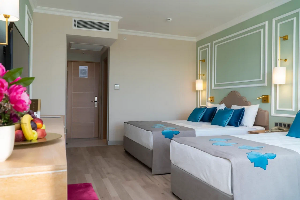 Хотелът се състои от четири 5-етажти корпуса, в които са разпределени 417 климатизирани стаи: 249 Standard Room Land View (29 кв.м), 31 Standard Room with Bunkbed (31 кв.м) и 139 Family Connection Room (57 кв.м). Те са оборудвани с телевизор, телефон, сет за чай/кафе, минибар, сейф, баня с душ, сешоар, безплатни тоалетни принадлежности, балкон, Wi-Fi. Ежедневно почистване на стаите, смяна на спалното бельо - три пъти седмично.
