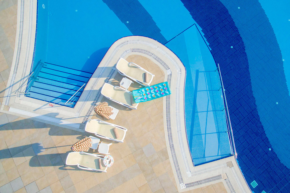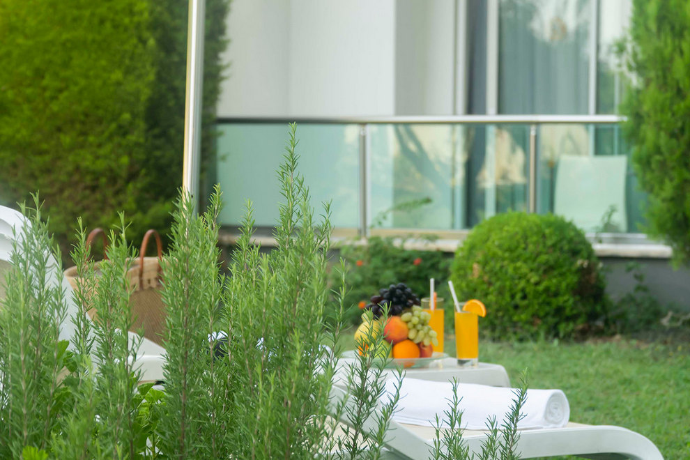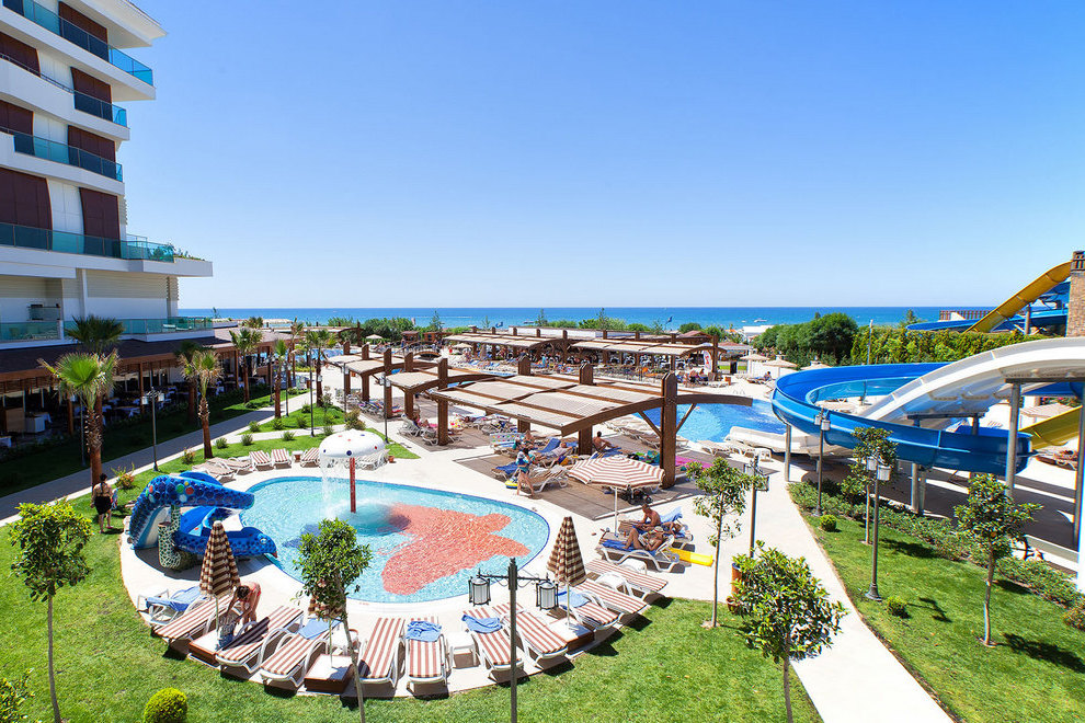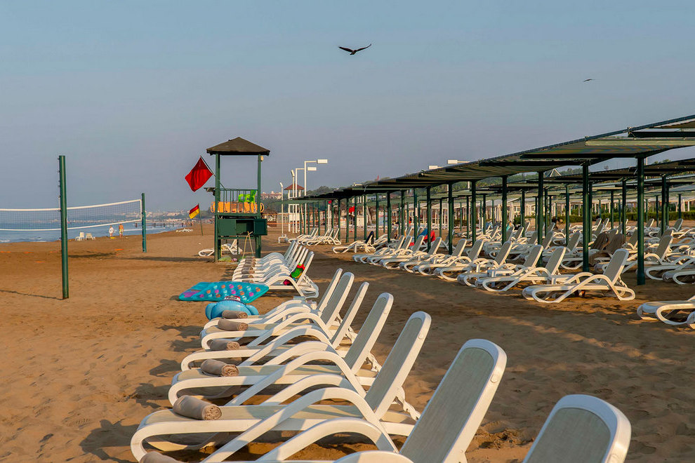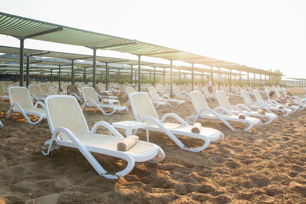 Собствен пясъчно-чакълест плаж, дълъг 100 м. 2 открити басейна, неотопляеми. 1 закрит басейн (отворен само през зимата). 3 водни пързалки. Пързалките не се отопляват и работят в зависимост от метеорологичните условия. Шезлонги, чадъри, плажни кърпи се ползват безплатно.