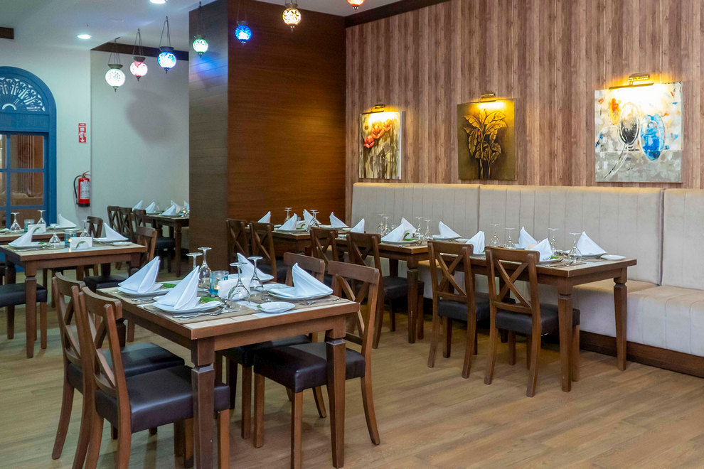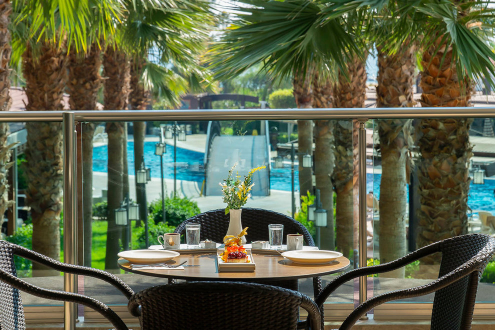 На разположение на гостите са основен ресторант и 4 а`ла карт ресторанта: турски, италиански, мексикански и рибен. В 5-те бара се поднасят разнообразни освежаващи напитки.