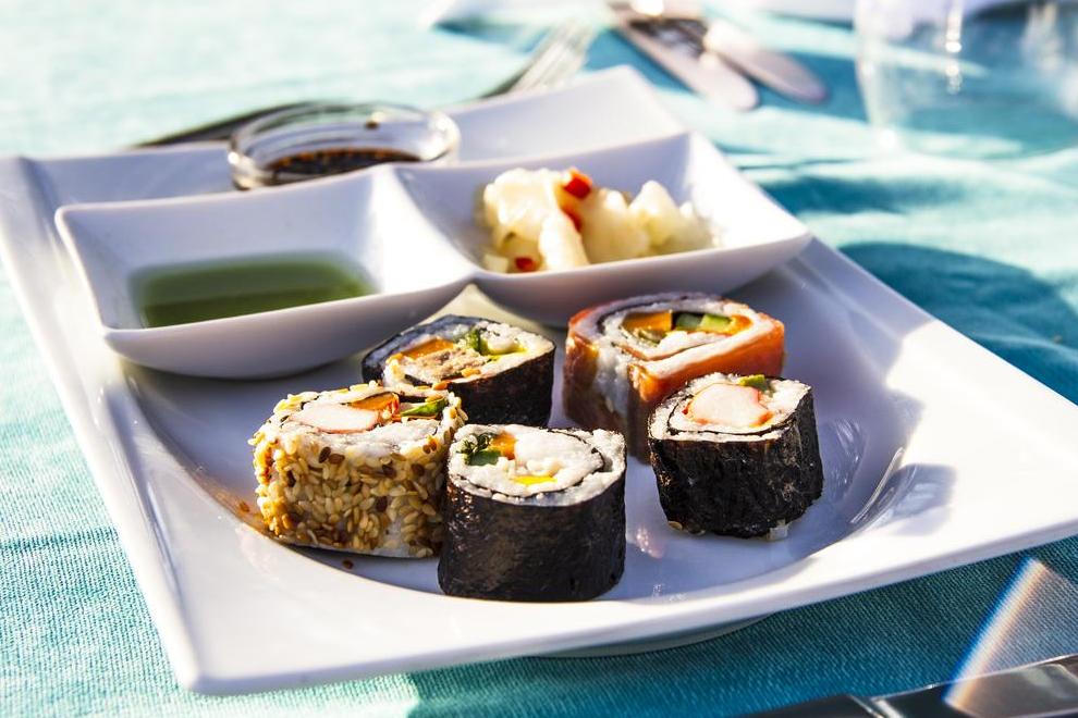 2 основни ресторанта и 3 различни а`ла карт ресторанта в съоръжението. Основният ресторант е в непосредствена близост до басейна, където закуска, обяд и вечеря се сервират на открито на шведска маса с богато разнообразие. Ресторантът разполага с открита тераса с капацитет от 450 души. Барът на плажа предлага богато меню и напитки през целия ден. Снекбарът при басейна предлага леки закуски, а барът, където през целия ден се сервират напитки, е за тези, които не могат да се измъкнат от басейна. Освен това сладоледът се сервира в определени часове на деня.
