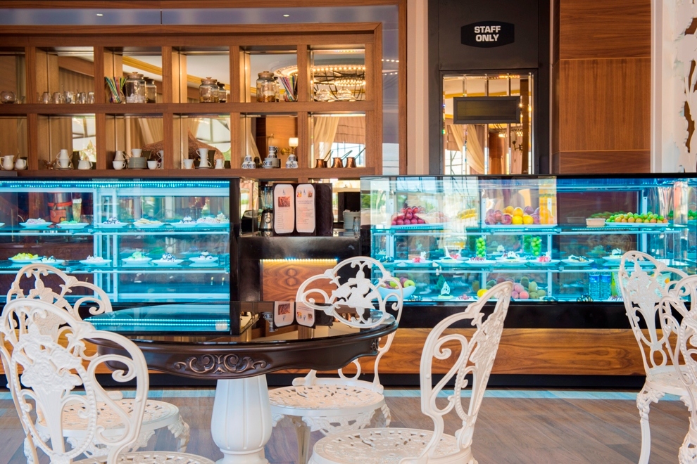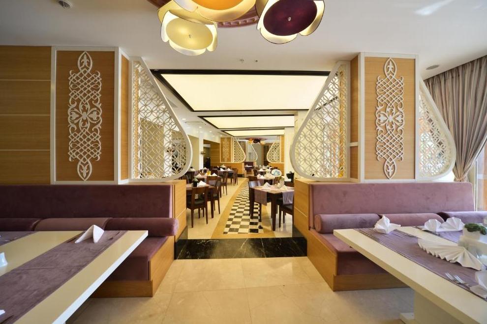 Основният ресторант разполага с 300 места на закрито и 300 места на открита тераса. Предлага местна и интернационална кухня за закуска, обяд и вечеря. 2 а`ла карт ресторанта: рибен и турски. Гостите могат да опитат любимата си напитка в един от четирите бара.