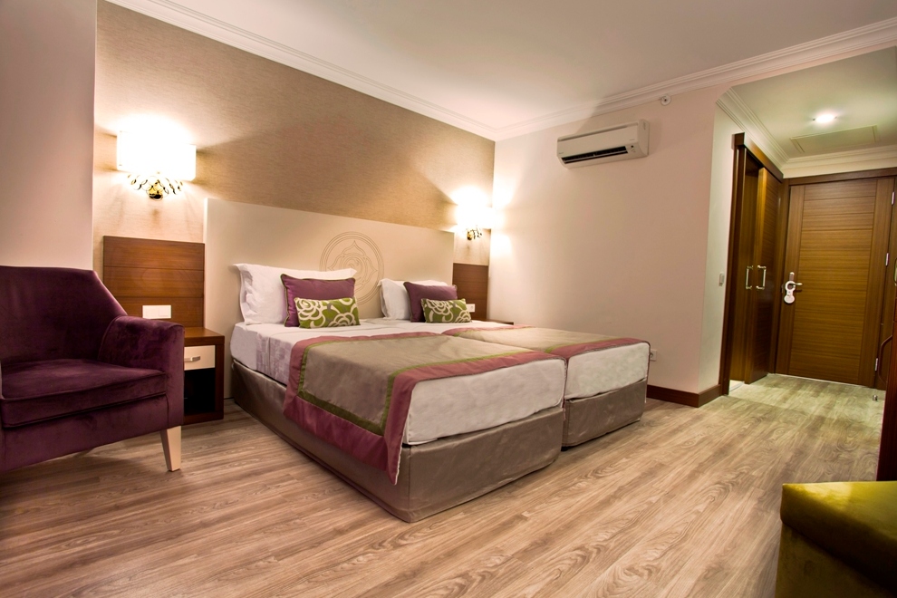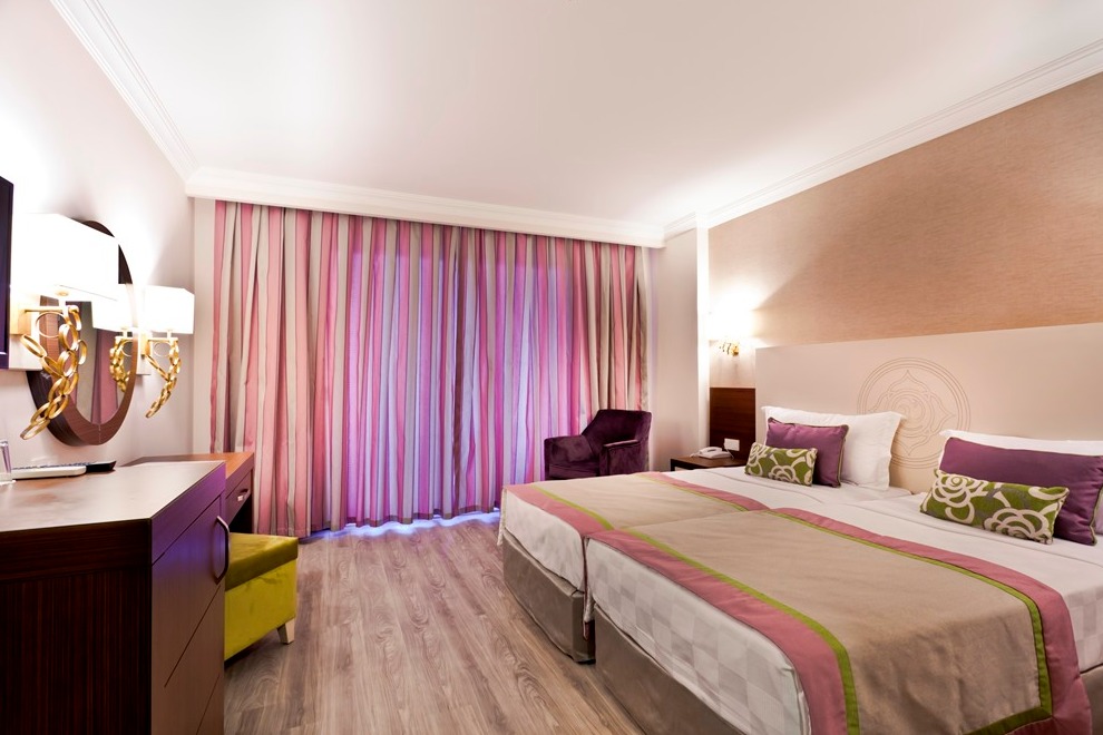 Хотелът се състои от една основна 6-етажна сграда (има асансьори) и триетажни корпуси Annex, в които са разпределени 343 климатизирани стаи: 158 Standard Room Land View (22 кв.м), 24 стандарт иконом (18 кв.м), 158 Standard Room Side Sea View (22 кв.м), Standard Room Sea View (22 кв.м). Приблизително 60% от стаите имат изглед към морето, частичен изглед към морето, а останалите - към суша. Модерно декорираните стаи имат индивидуален климатик, телевизор, телефон, минибар, сет за кафе/чай, сейф, баня с душ или вана, сешоар, балкон, Wi-Fi. Всекидневно почистване на стаите, смяна на спалното бельо два пъти седмично.