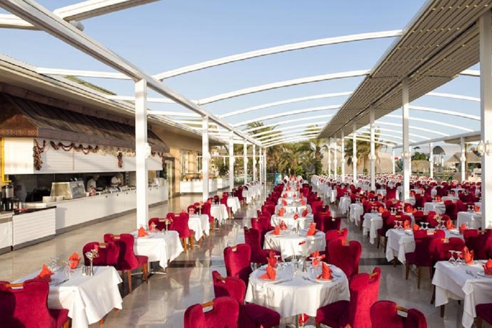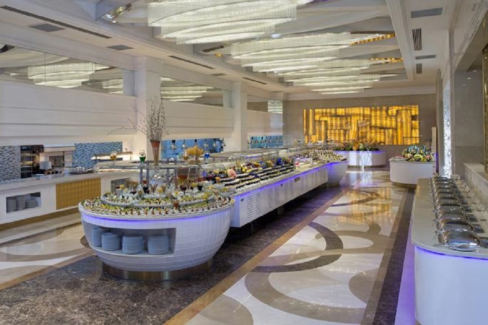 Хотелът има основен ресторант Panorama, в който се предлага детско и диетично меню. А`ла карт ресторантите: италиански ресторант, рибен ресторант, китайски ресторант, японски ресторант, Steak House, френски ресторант (работят от 19:00 до 21:00 ч., с предварителна резервация). Освежаващи напитки и закуски се предлагат в Cinna bar (денонощно); Deluxe lobby bar (денонощно); Festival bar (09:00-18:00 ч.); бар при басейна Bella pool bar бар (09:00-00:00 ч.); Deluxe pool bar (10:00-18:30 ч.); Beach bar (10:00-18:00 ч.); Pier Bar (10:00-00:00 ч.); Arena bar (денонощно); Disco bar (23:30 до 02:00 ч.).