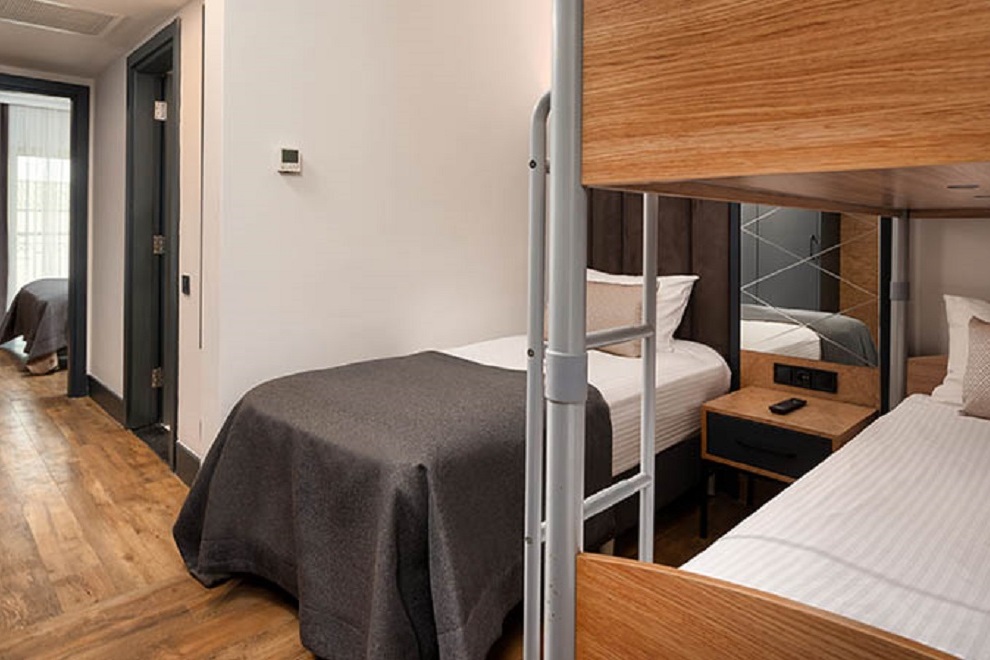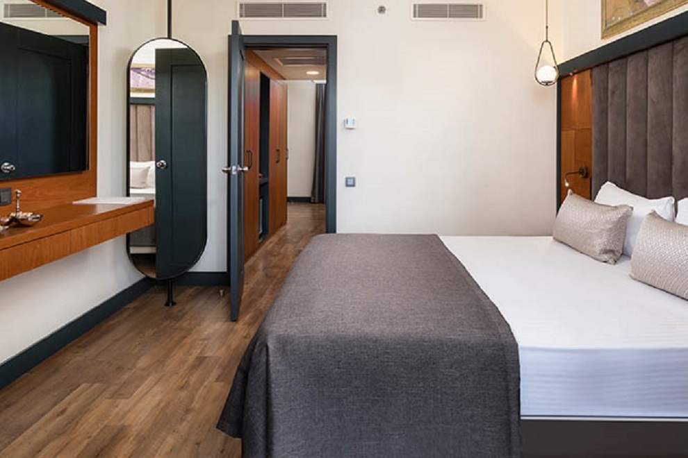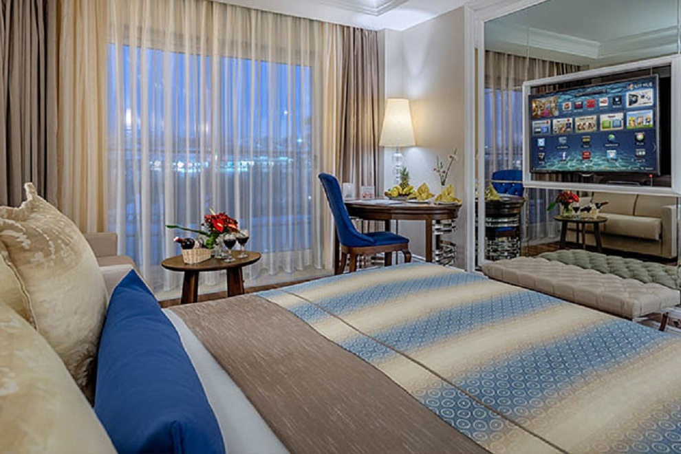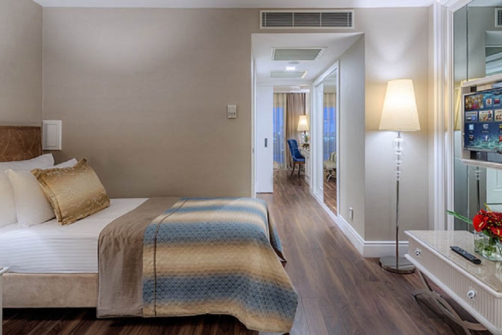 Състои се от седем 4-етажни корпуса Main Building (има асансьори) и четири 5-етажни корпуса Deluxe Building (през пътя с надземен преход, срещу сградата Main Building (цялата инфраструктура е обща, независимо от сградата на настаняване). Хотелът посреща гостите си в 724 климатизирани стаи, от които 452 стандартни и 125 семейни. Всички имат телевизор, телефон, сейф (безплатно), минибар (безплатно), баня с душ, сешоар. Всички стаи имат балкони, а някои включват и хидромасажна вана. Стаите се почистват ежедневно, спалното бельо се сменя три пъти седмично.