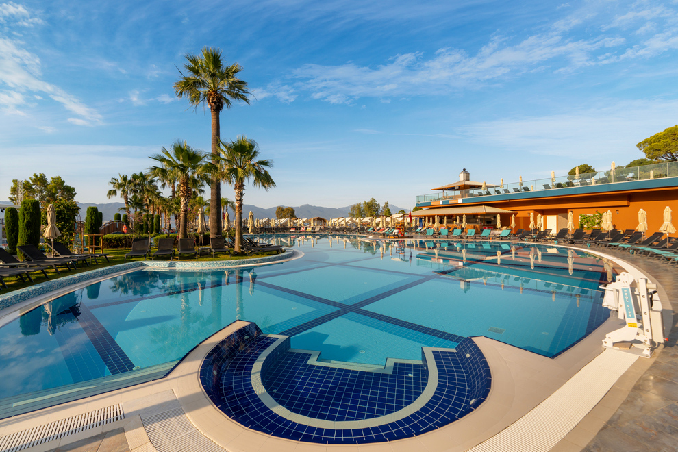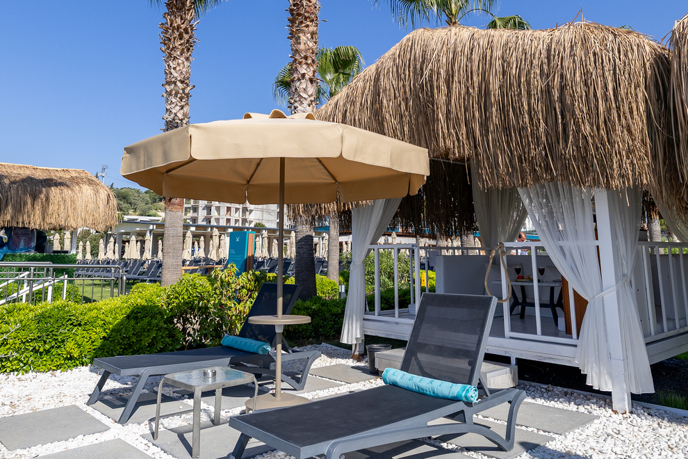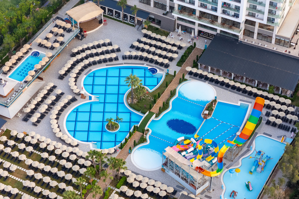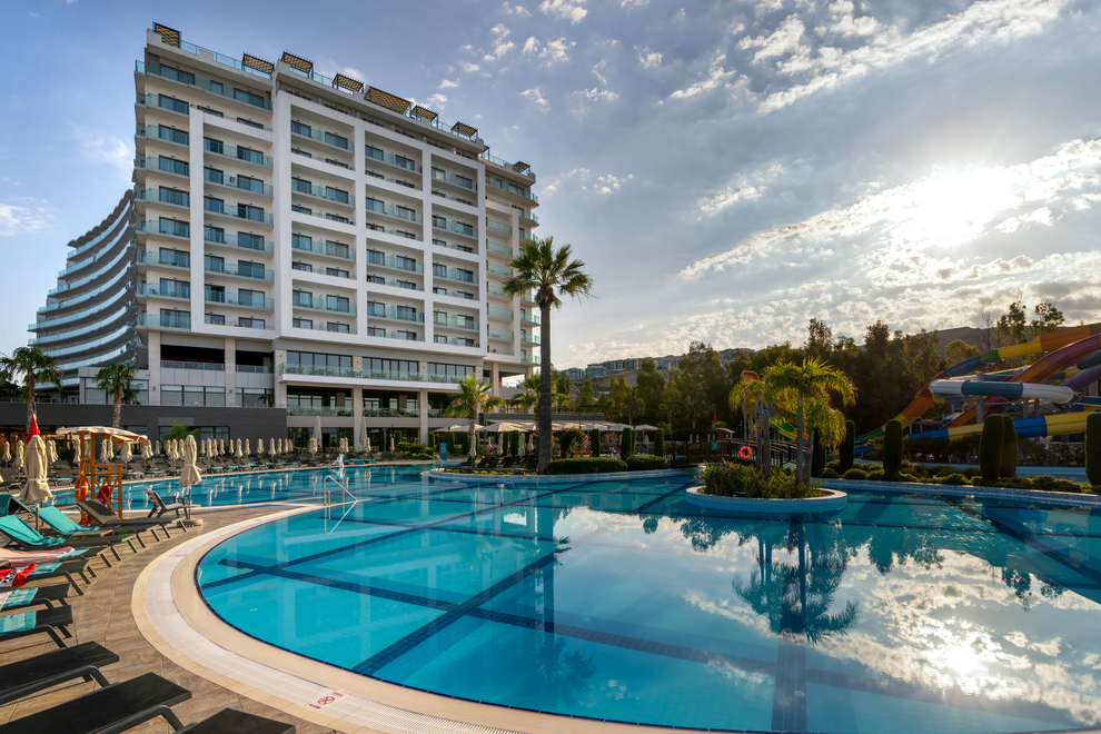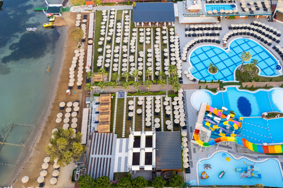 Хотелът има собствен пясъчно-чакълест плаж с платформа и кей. За удобство на гостите си има още 4 открити басейна със сладка вода, неотопляеми. 1 закрит басейн със сладка вода. 5 водни пързалки за възрастни и 3 за деца, неотопляеми, работят по график. Чадъри, шезлонги и матраци на плажа и при басейна се предоставят безплатно.