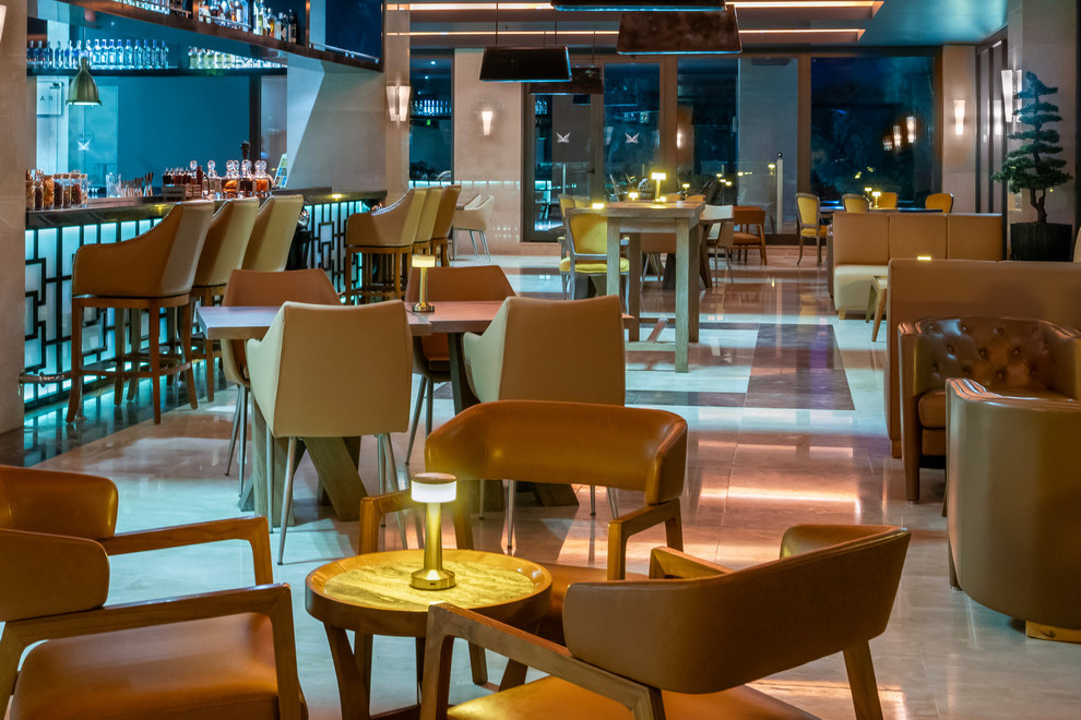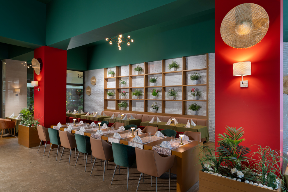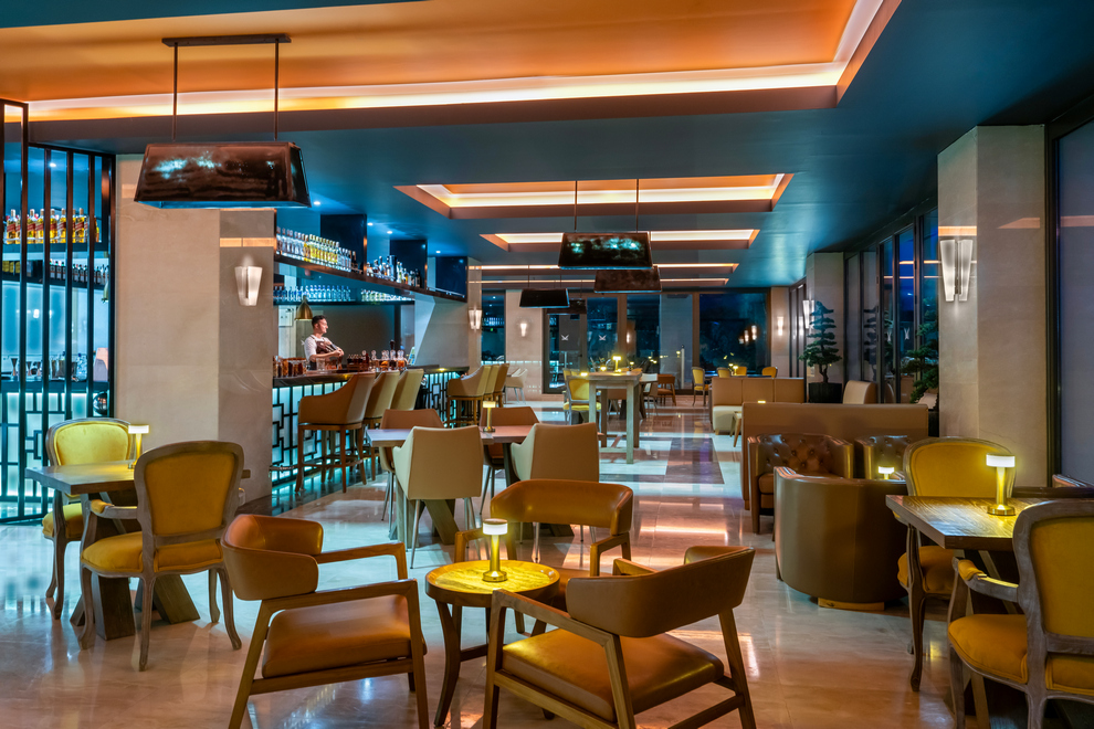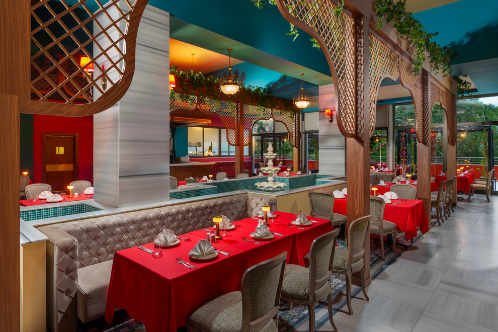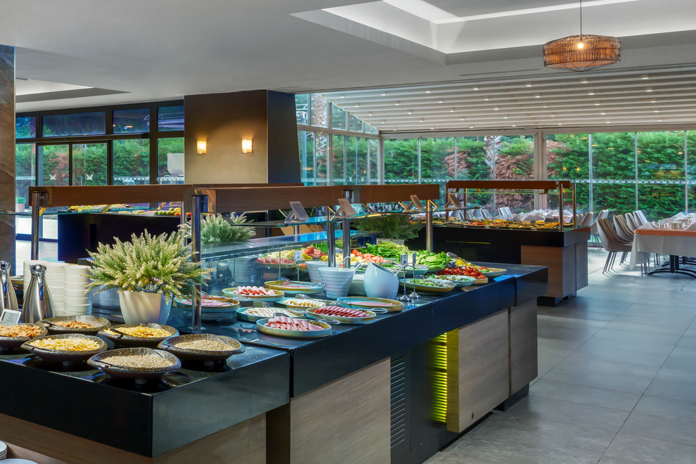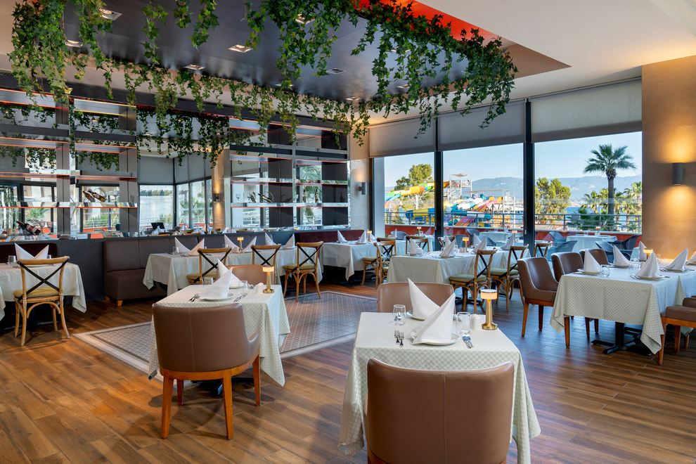 На разположение на гостите са основен ресторант за закуска, късна закуска, обяд, вечеря. Booze & Snack a la carte ресторант е отворен за обяд от 12:00 - 17:00 ч. Сладкарницата работи денонощно. 5 а`ла карт ресторанта: Seven, Mi Restaurant, Lime Mexican (безплатнo, с предварителна резервация чрез приложението Liberty), Dolce Vita Italian и Yamas (срещу заплащане, с предварителна резервация чрез приложението Liberty). Разнообразни напитки и закуски се предлагат в 6 бара: Timeless Bar (работи денонощно), Palm Court Bar, Tokyo Bar, Milkshake & Smoothie Bar, Penthouse Adult Bar (16+), Booze & Snack Pool Bar 10:00-18:00 ч.