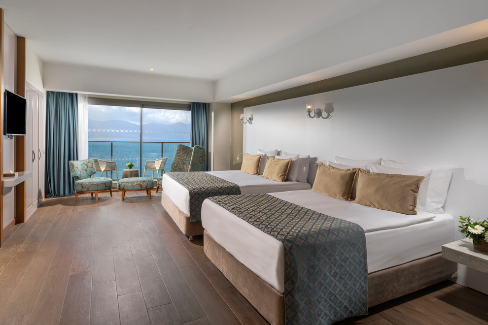 Deluxe Side Sea View разполагат с 2 двойни легла, площ 42 кв.м, максимално настаняване 4 възрастни.