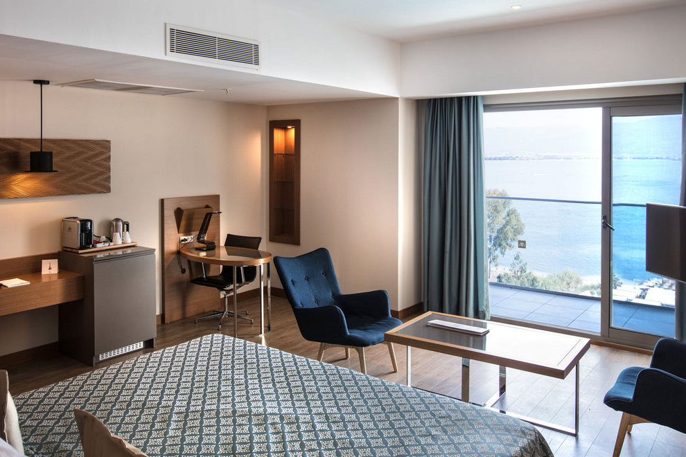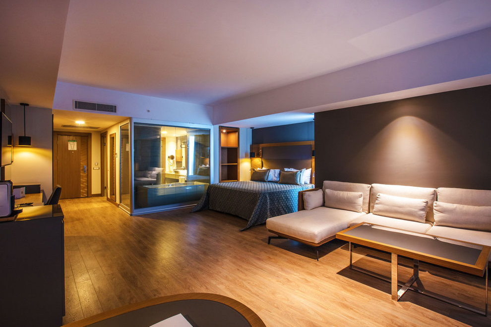 Хотелът се състои от една 9-тажна сграда, в която са разпределени 392 климатизирани стаи: 303 Deluxe Side Sea View (42 кв.м), 51 Superior Side Sea View (42 кв.м), 4 Handicupped (1 двойно легло, 1 единично легло, ширината на банята и входната врата - 95 см, а ширината на балконската врата - 120 см - 42 кв.м), 8 Corner Suite Side Sea View (спалня, всекидневна, 2 бани - 70 кв.м), 8 Junior Suite Sea View (спалня, всекидневна, 2 бани - 70 кв.м), 8 Deluxe Suite Sea View (62 кв.м), 8 Deluxe Suite Side Sea View (62 кв.м), 2 King Suite Sea View (спалня, всекидневна, 2 бани, 130 кв.м). Всички стаи са оборудвани с телевизор, телефон, сет за чай/кафе, минибар (безплатен), сейф (безплатен), ютия и дъска за гладене, меню възглавници, меню аромати за стая, баня с душ и вана, джакузи, сешоар, ароматизирани капсули за вана, балкон, Wi-Fi. Стаите се почистват всеки ден, спалното бельо се сменя два пъти седмично.