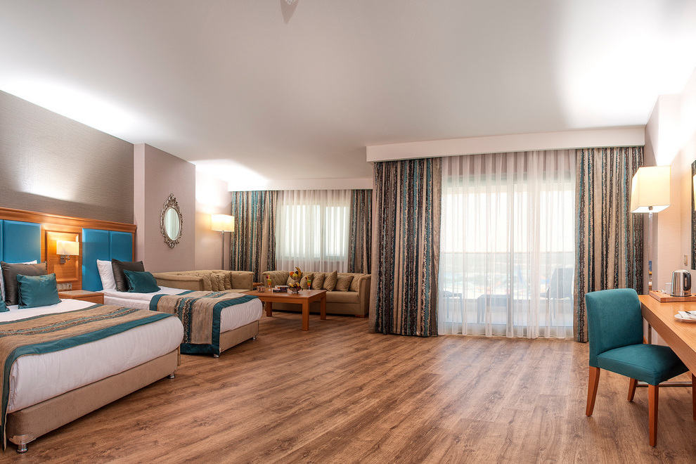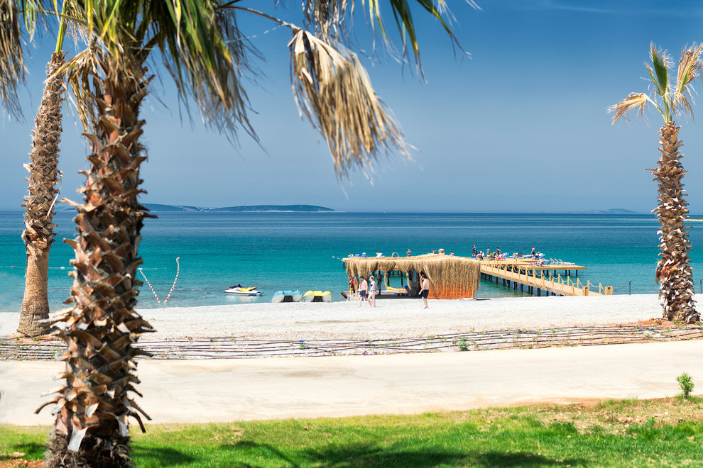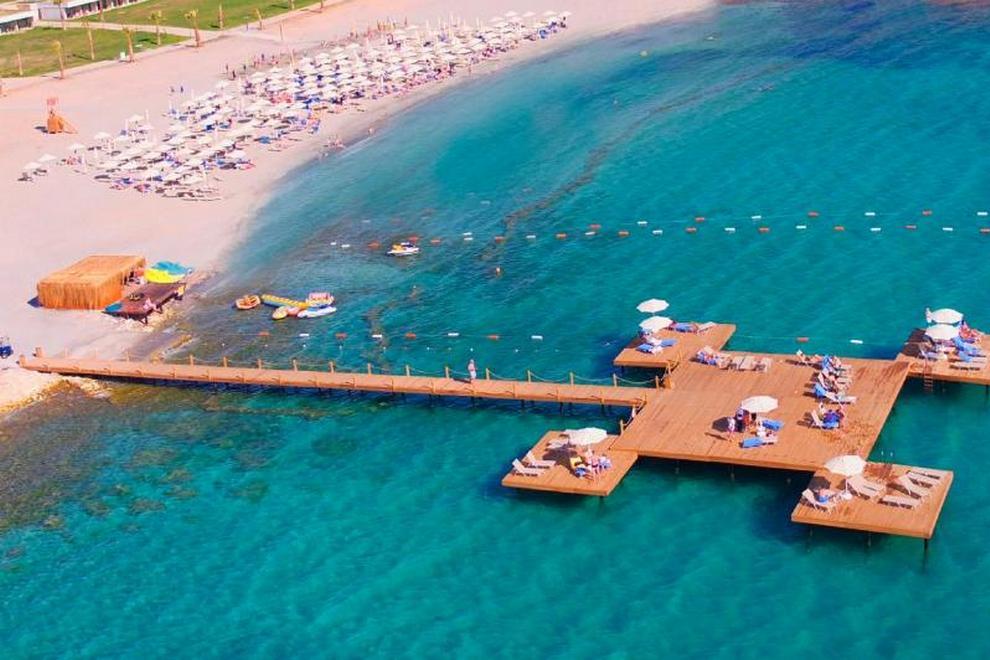 Хотелът разполага със собствен пясъчен плаж с дължина от 600 метра. Напълно отопляем детски басейн и определена отопляема част от басейна за възрастни. На детските басейни има специални детски шезлонги. Чадъри и шезлонги на плажа и при басейна се предлагат безплатно.