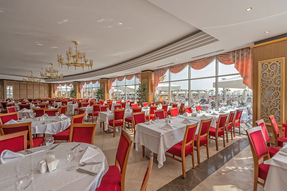 Хотелът разполага с основен ресторант, 3 а`ла карт ресторанта - Lalezar (турски), Fangri (рибен), Olivia (средиземноморски), които се посещават с предварителна резервация. Гостите могат да отдъхнат със свежа напитка и да хапнат в 5 бара: снек бар на плажа, лоби бар, бар на басейна, сейлър бар, лейк бар, бар на плажа. Освен това има сладкарница, Нощен клуб/дискотека.
