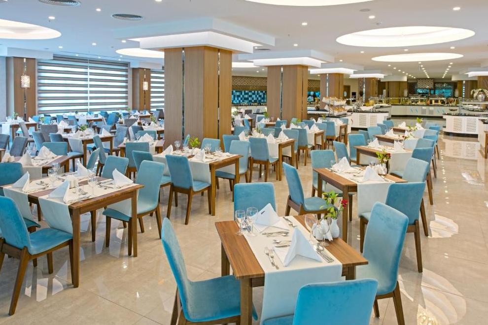 Хотелът разполага с три ресторанта. Настаняването ол инклузив включва ежедневна закуска, обяд и вечеря. Снек-барът е идеален за бързо хапване, а барът е идеален за питие след натоварен ден.