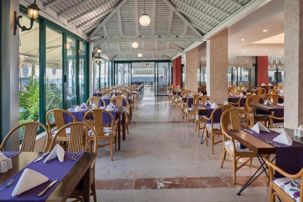 На разположение на гостите са основен ресторант, а`ла карт ресторант (с предварителна резервация), 2 бара, сладкарница. Ресторантът на хотела сервира международна и регионална турска кухня както на закрито, така и на терасата с панорамна гледка към залива на Анталия.