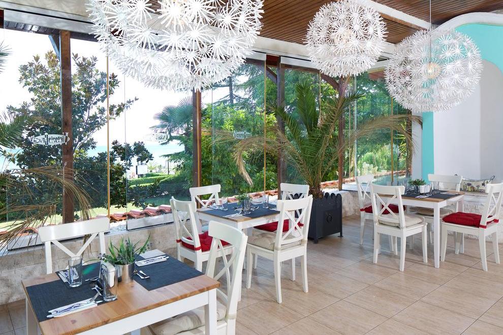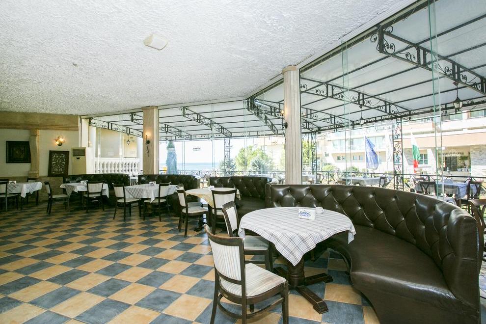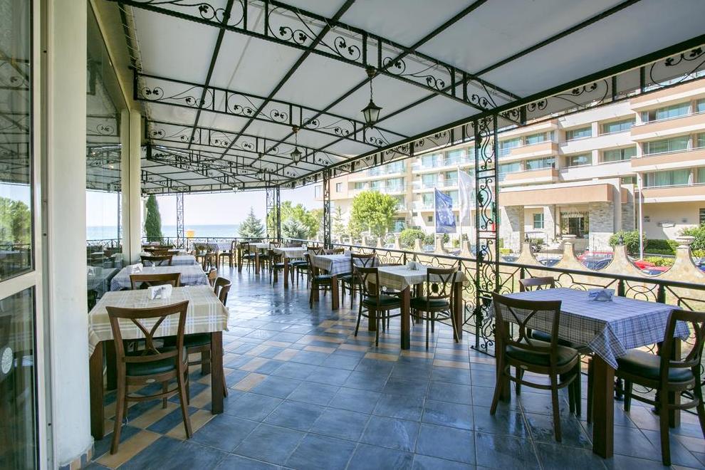 Хотел Атриум Бийч разполага с основен ресторант, където се сервира закуска, обяд и вечеря на All Inclusive борд. На територията на комплекс Роял Клуб Елените има и три тематични а`ла карт ресторанта за любителите на Българска, Средиземноморска или Италианска кухня, които стават част от All Inclusive програмата при минимум 4 нощувки и броят безплатни посещения, зависи от броя нощувки. През целият ден, на територията на комплекса можете да намерите още разнообразни закуски и напитки, като дюнери, форнети, сладолед и др. В семпла, но уютна обстановка гостите на хотел Атриум Бийч могат да се насладят на свежа освежаваща напитка в лоби бара на хотела. На територията на комплекса са разположени допълнителни локации и барове, където гостите на хотела, могат да се насладят на разхлаждащи напитки. За любителите на нощния живот, комплекса предлага Нощен Клуб и Анимационна зала, където се предлагат напитки на база All Inclusive, както и занимателни шоу програми.