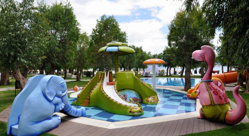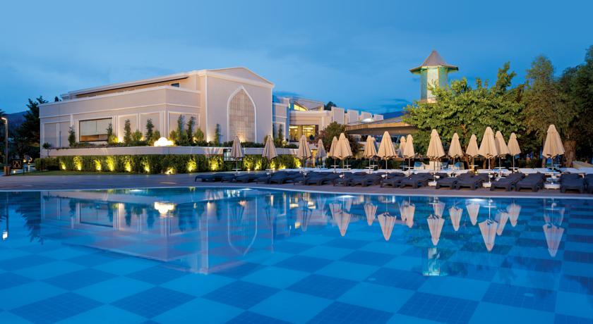 Описание Местоположение Хотелът се намира на 10 км от Дидим, в района на Акбюк, на 40 км. от летище Милас, на брега на морето. Построен е през 2014 г. Настаняване Хотелът разполага общо с 330 стаи, от които 176 клубни делукс, а 154 са фамилни делукс. Всички са оборудвани с климатик, сателитна телевизия, телефон, баня с душ/вана, сешоар, мини бар (платен), сейф (платен), балкон. Почистване на стаите - всеки ден, смяна на бельото и кърпите - 3 пъти в седмицата. Храна и напитки Хотелът разполага с основен ресторант, 3 а`ла карт ресторанта (с предварителна резервация, срещу заплащане), 3 бара. Удобства, спорт и забавления Дискотека, СПА център, сауна, фитнес, телевизионна зала, аеробика, плажен волейбол, баскетбол, мини футбол, тенис корт, тенис на маса, дартс, билярд, анимационна програма, музика на живо, интернет (на лоби), конферентнa залa, химическо чистене, обмяна на валута, паркинг. За децата - детски басейн, водни пързалки, детски бюфет, мини клуб /4-12 г./, мини диско. Плаж Хотелът разполага със собствена, пясъчна, дълга 250 метра ивица. Има също 2 открити басейна, детски басейн и 3 водни пързалки. Чадъри и шезлонги на плажа и при басейна – безплатно, плажни кърпи – срещу депозит.