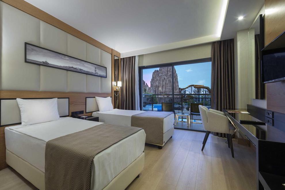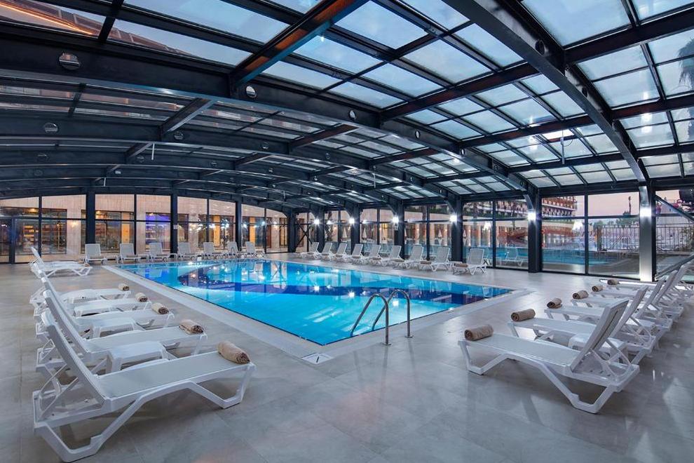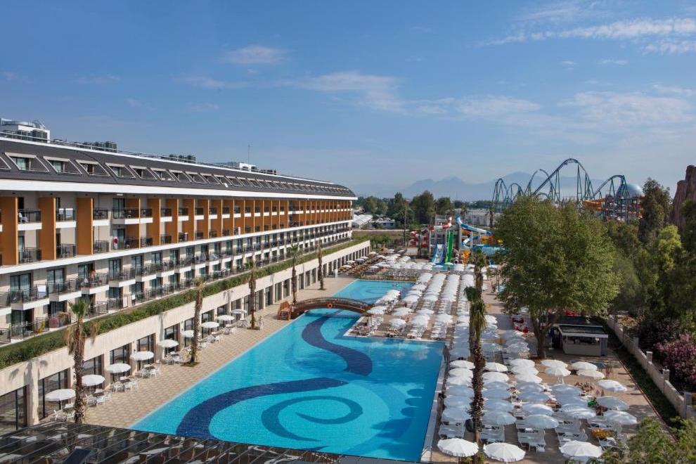 Хотелът е построен през 2019 г. на обща площ от 16 000 кв.м и разполага с магазини, СПА център, 5 водни пързалки, пералня, лекарски кабинет, фризьорски салон, комфортни стаи, собствен плаж с осигурен безплатен шатъл, открит и закрит (отопляем) басейн, аквапарк.