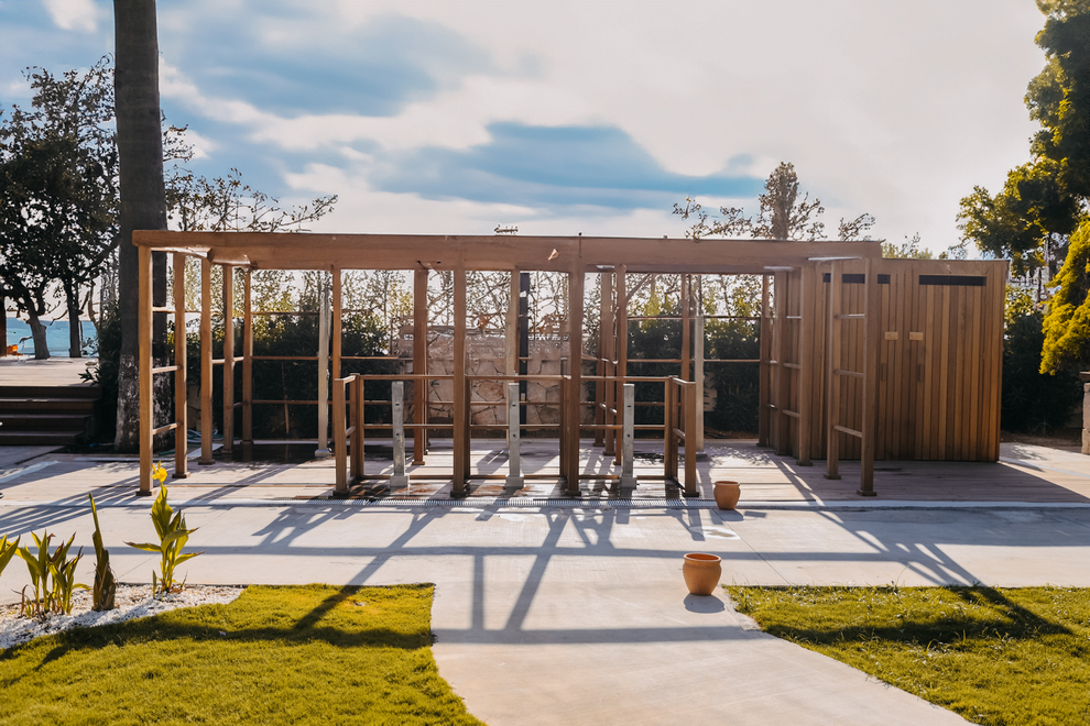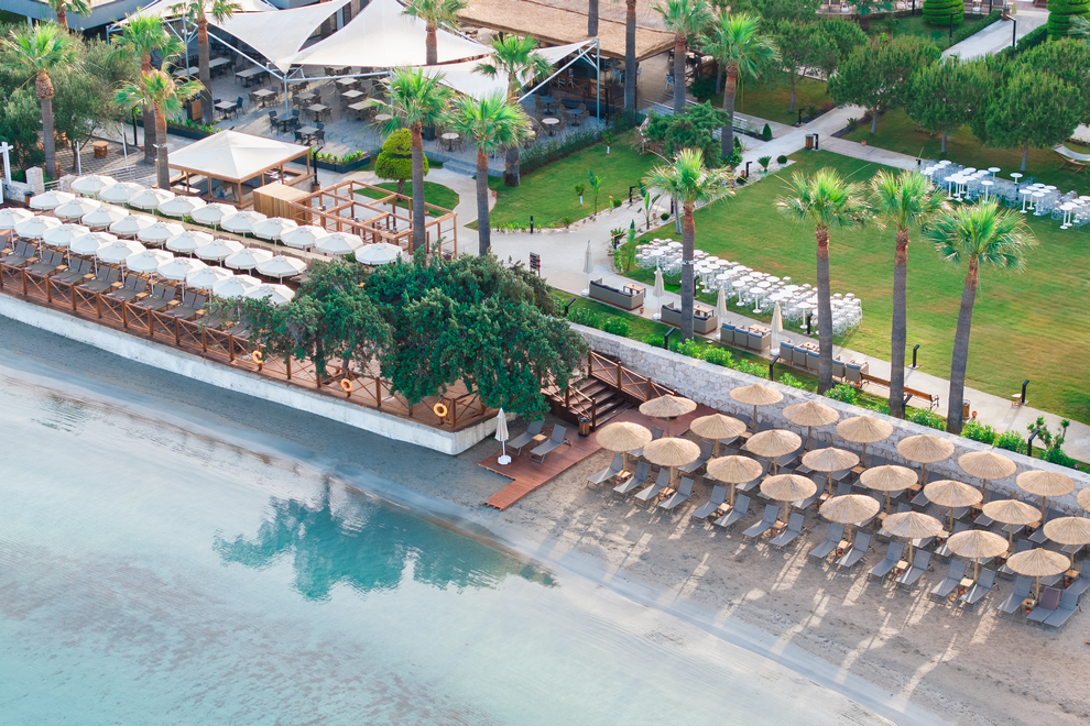 Хотелът има собствен пясъчен плаж и 2 открити басейна. Чадъри и шезлонги при басейните и на плажа -се ползват безплатно.