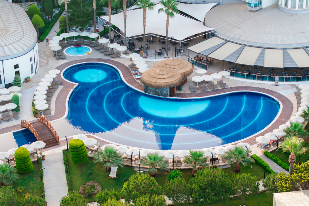 Хотелът предлага възможности за отдих и забавления на 2 външни басейна, 2 детски басейна, 3 водни пързалки, 1 закрит плувен басейн, градина, SPA център, сауна, турска баня, джакузи, фитнес център, детска площадка, мини клуб, интернет кафе, зала за игри.