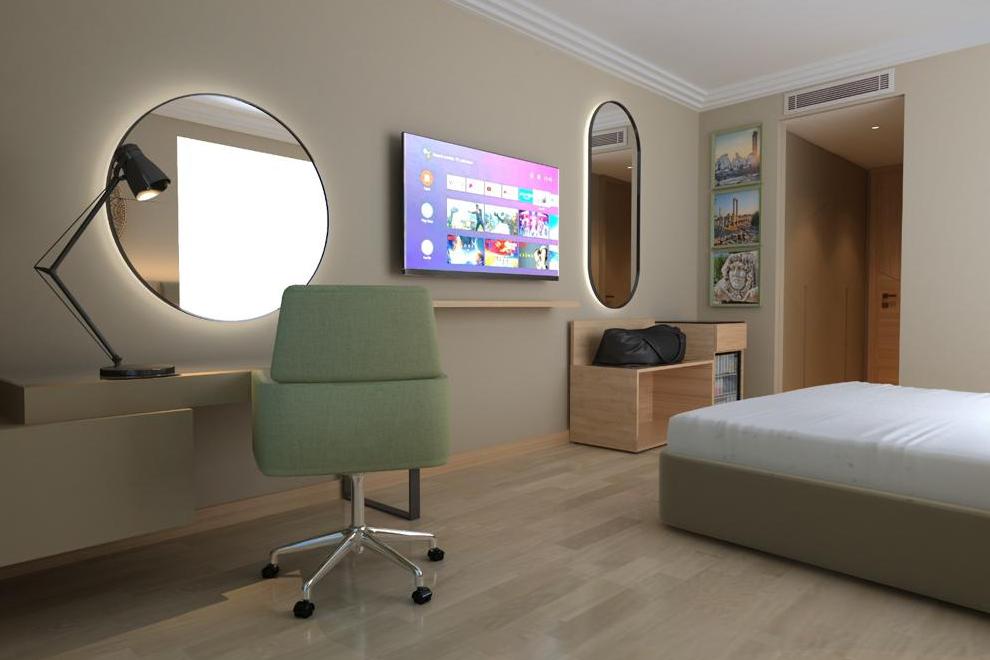 Посреща гостите си в 282 климатизирани стаи, разположени в една шестетажна сграда. Всички стаи са оборудвани с централен климатик, LCD TV, баня с душ или вана, сешоар, минибар срещу заплащане), сейф (срещу заплащане), балкон (не във всички стаи). Стаите се почистват всеки ден, спалното бельо се сменя три пъти седмично.