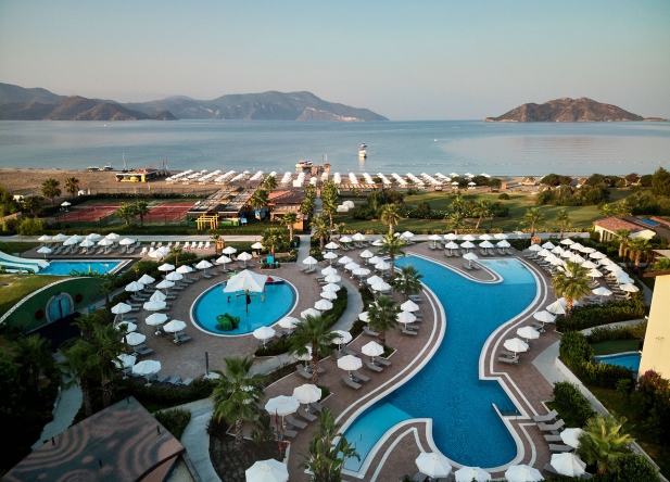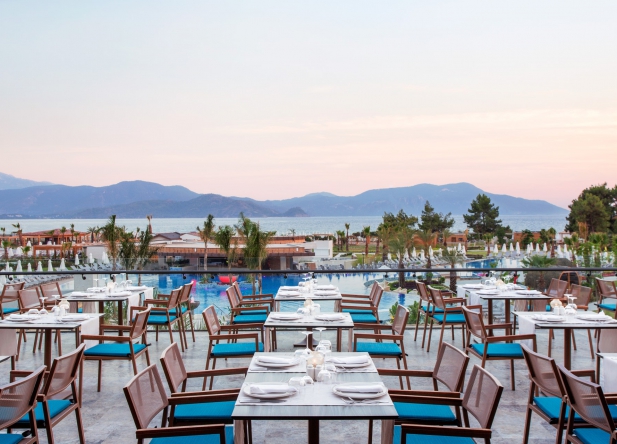 Хотелът разполага с основен ресторант, в който се сервира на шведска маса. Освен това предлага незабравим вкусен празник в своите ресторанти и барове, проектирани със стилни и модерни детайли. В допълнение към турската и международната кухня, ви очакват 6 стилни ресторанта, предлагащи италианска кухня, кухня от Далечния Изток, морски дарове и барбекю и 7 уютни бара, където можете да намерите свежи напитки. Освежаващи коктейли, местни и международни напитки са безплатни до 02:00 часа в барове, които сервират в очарователната атмосфера на Fethiye.