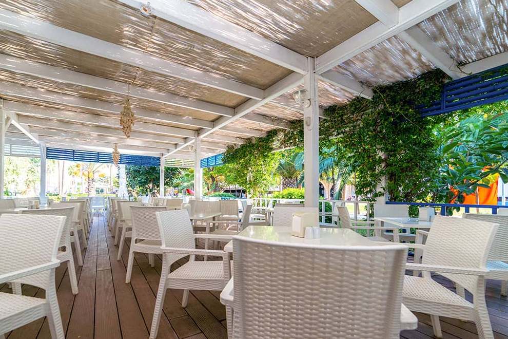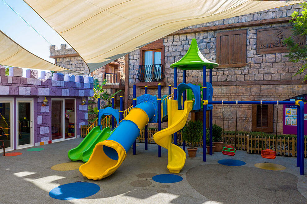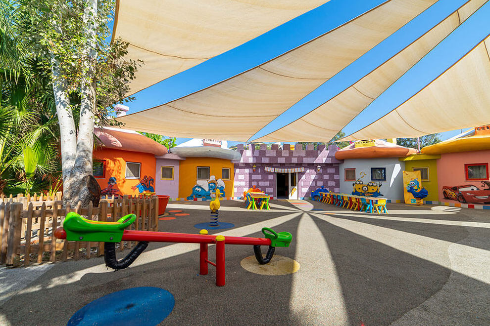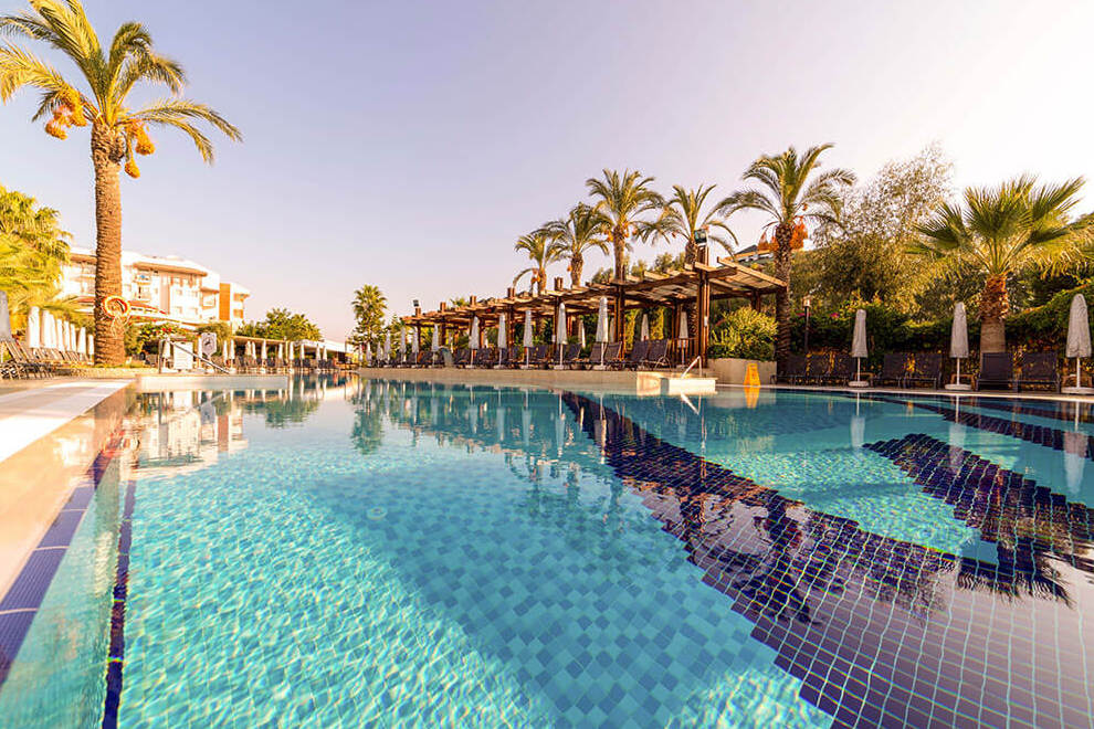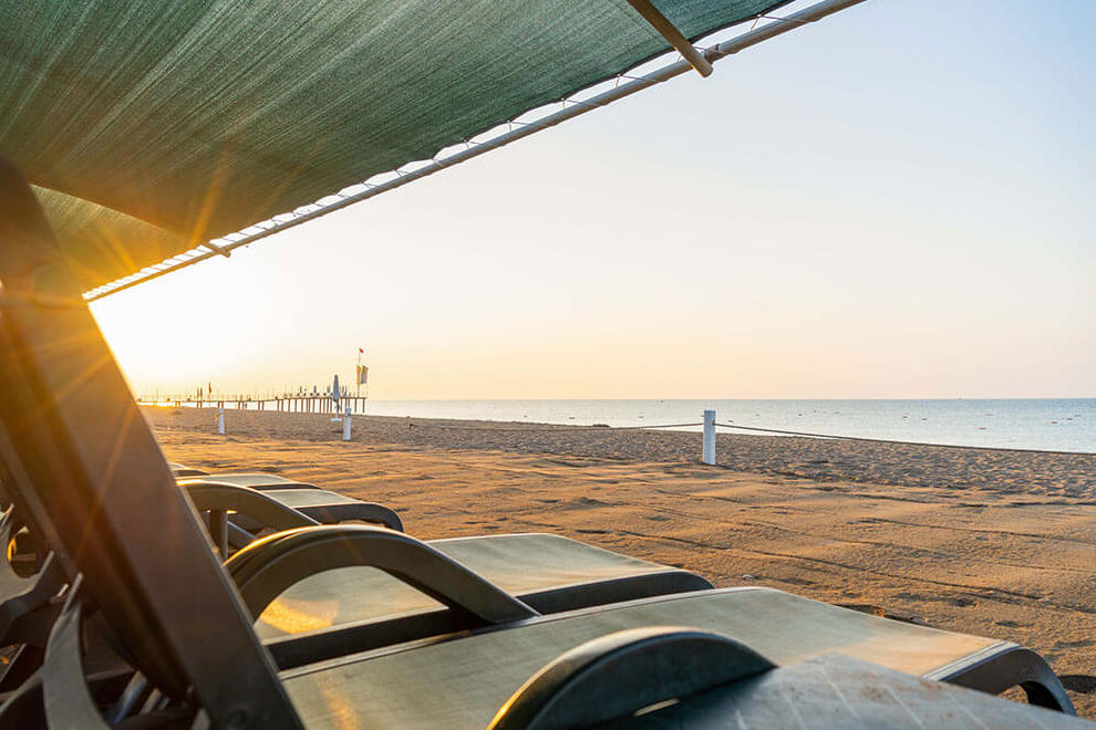 Хотелът разполага със собствен пясъчен плаж с дължина от 60 м и дървен кей. Шезлонги, чадъри, матраци, плажни кърпи се предоставят безплатно. Хотелът има два открити басейна, три пързалки, детски басейн.