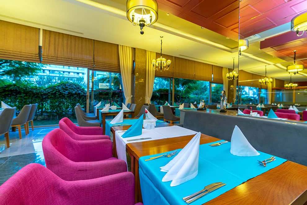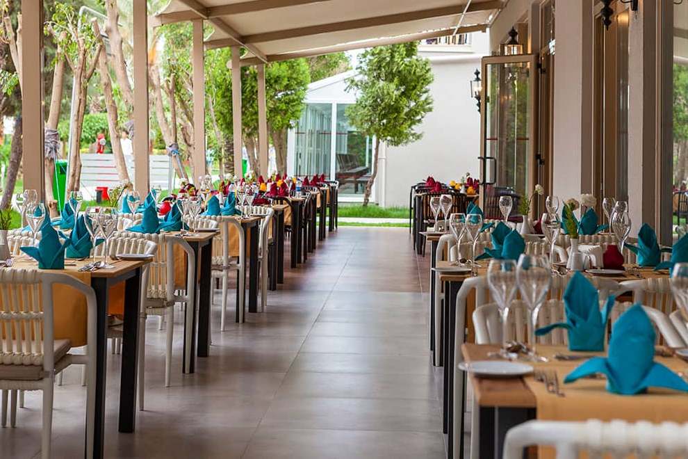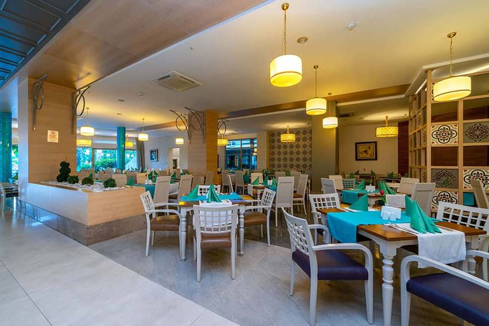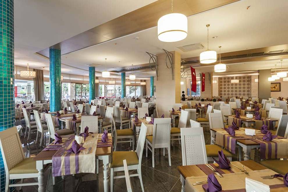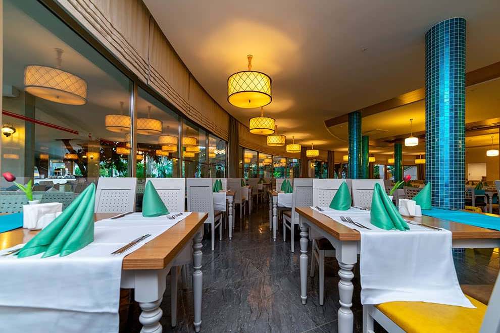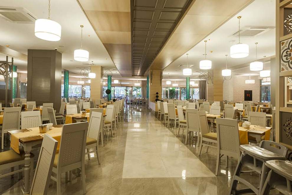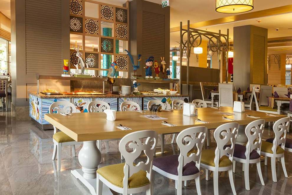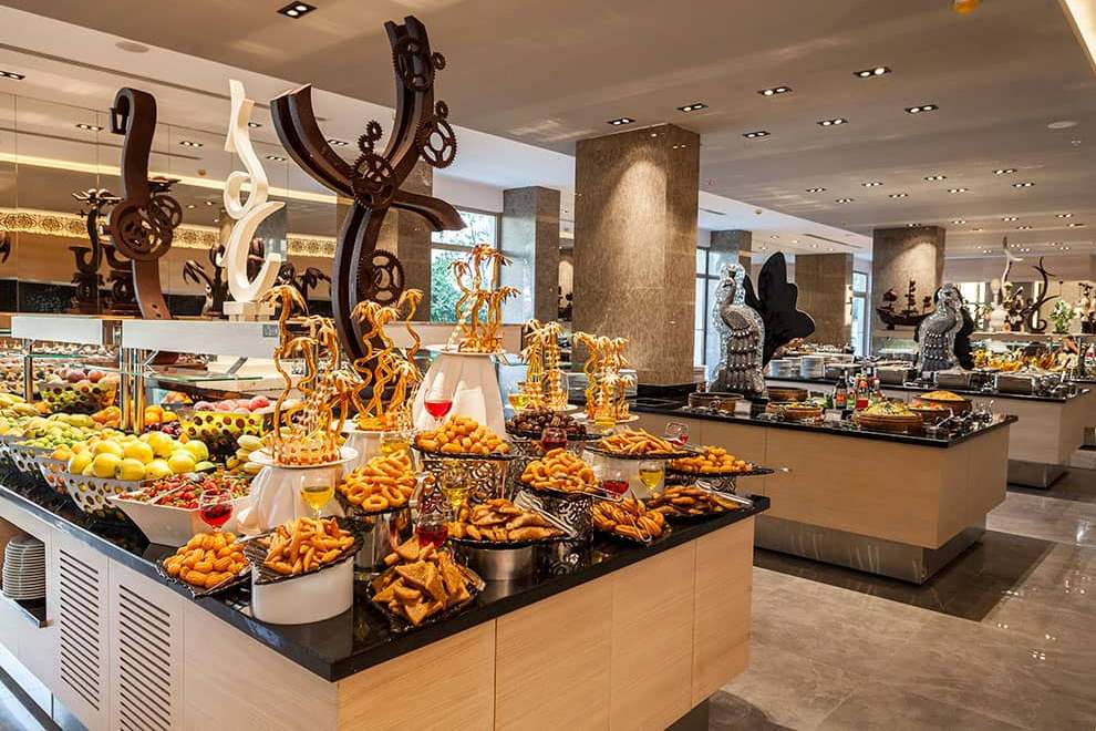 Хотелът разполага с основен ресторант, 3 а`ла карт ресторанта (турски, италиански и рибен), снек ресторант, 7 бара и дискотека, сладкарница.